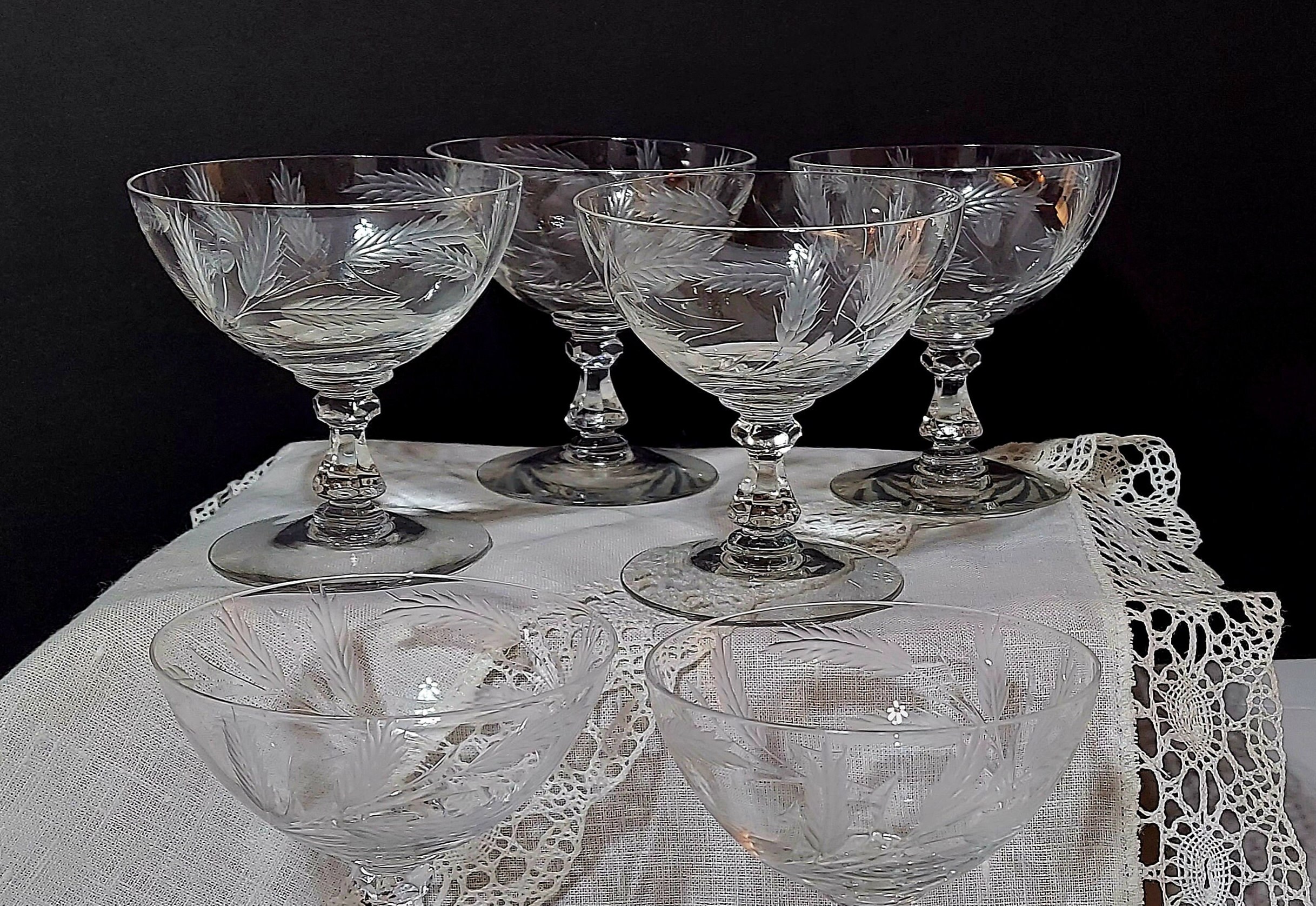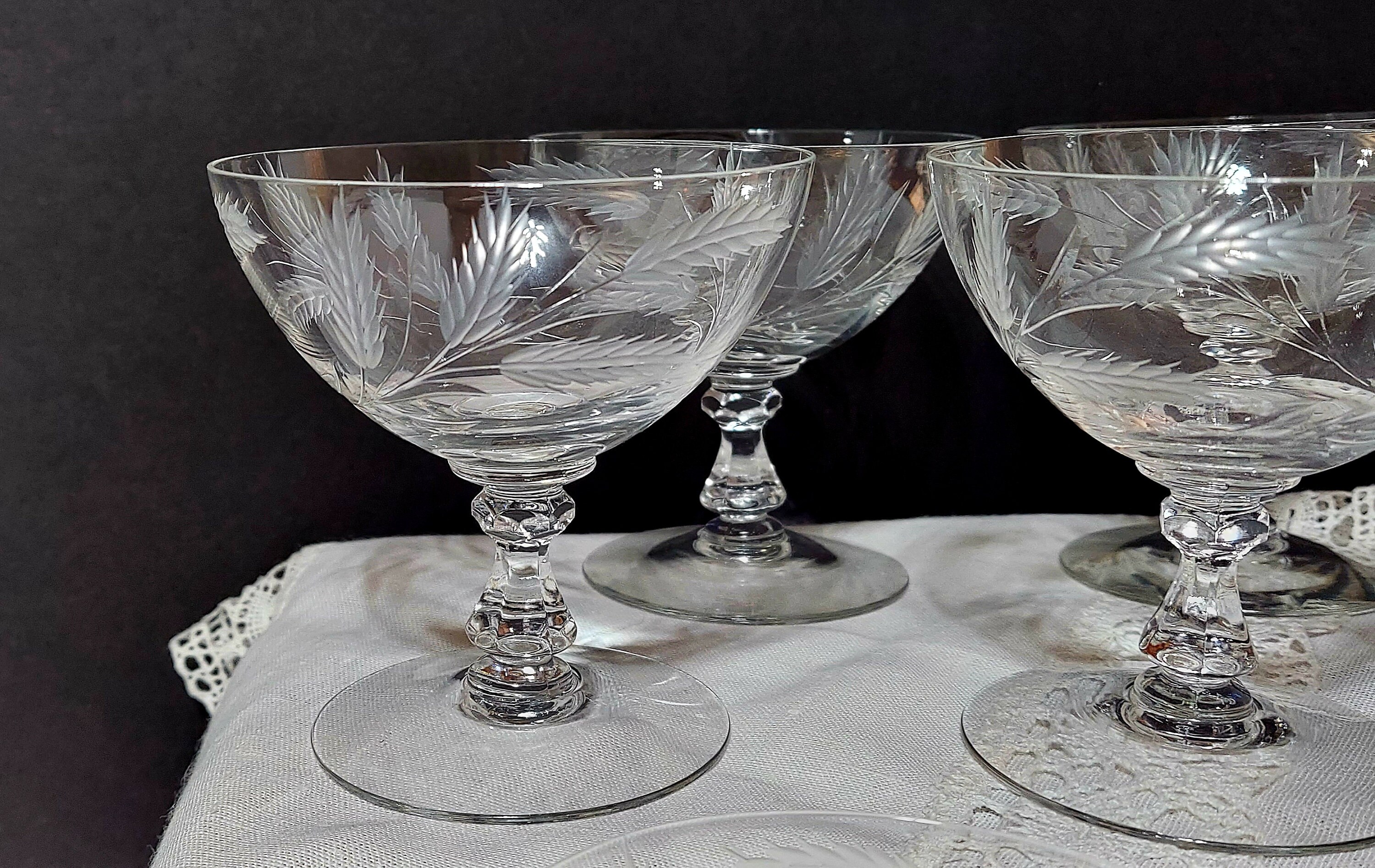 Set of 6 CAMBRIDGE gray-cut low champagne/sherbet "Harvest" c. 1950