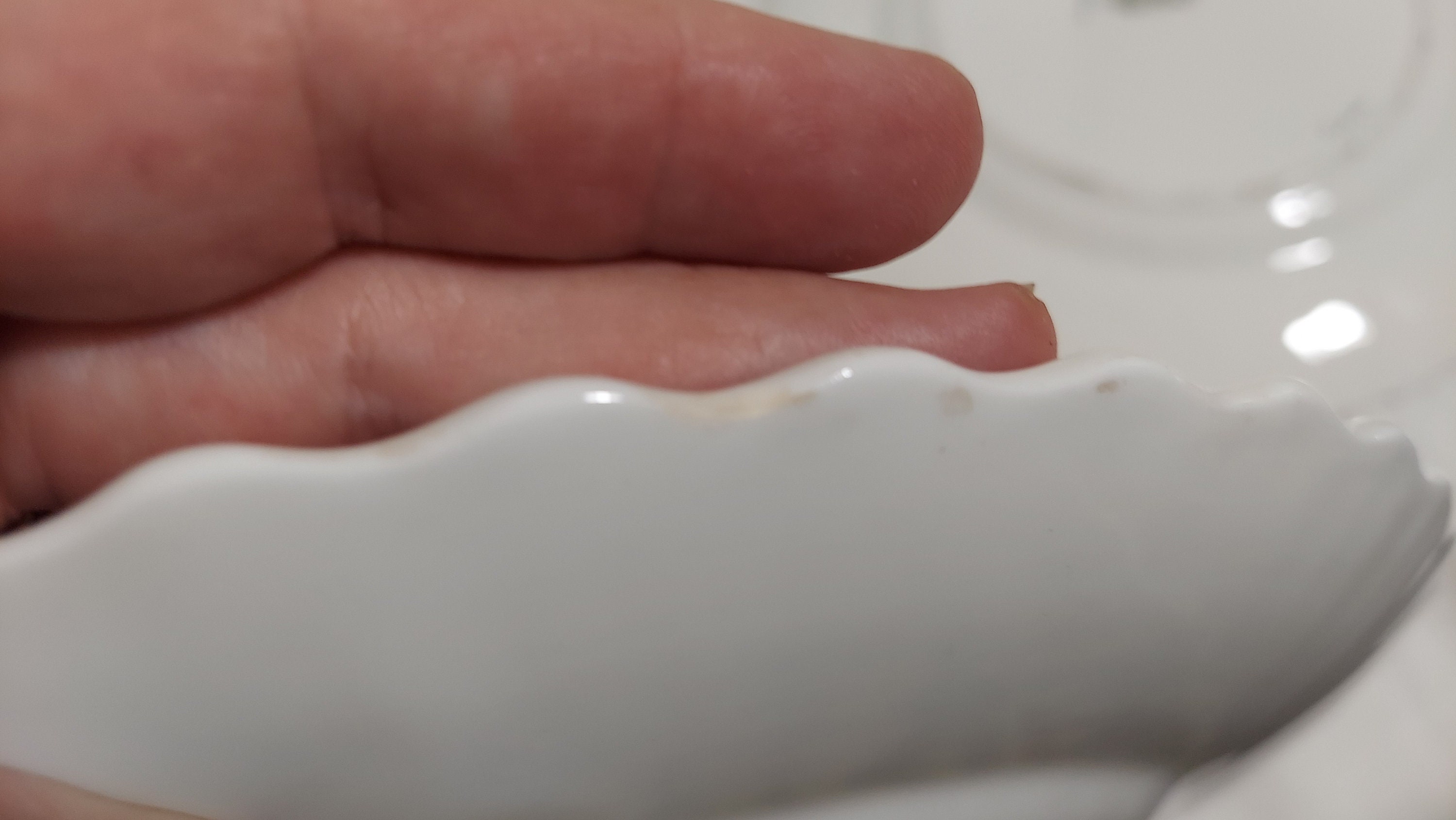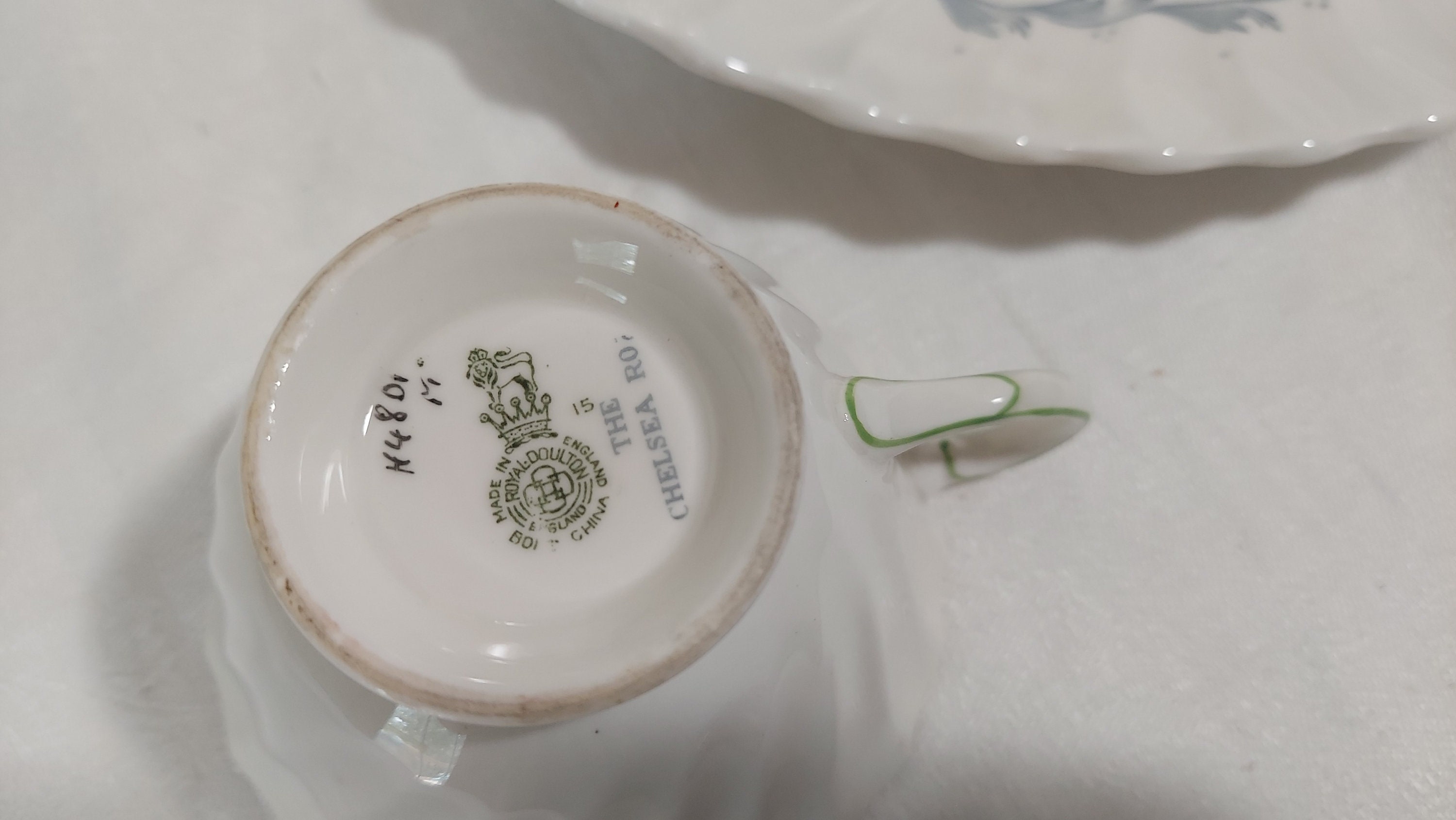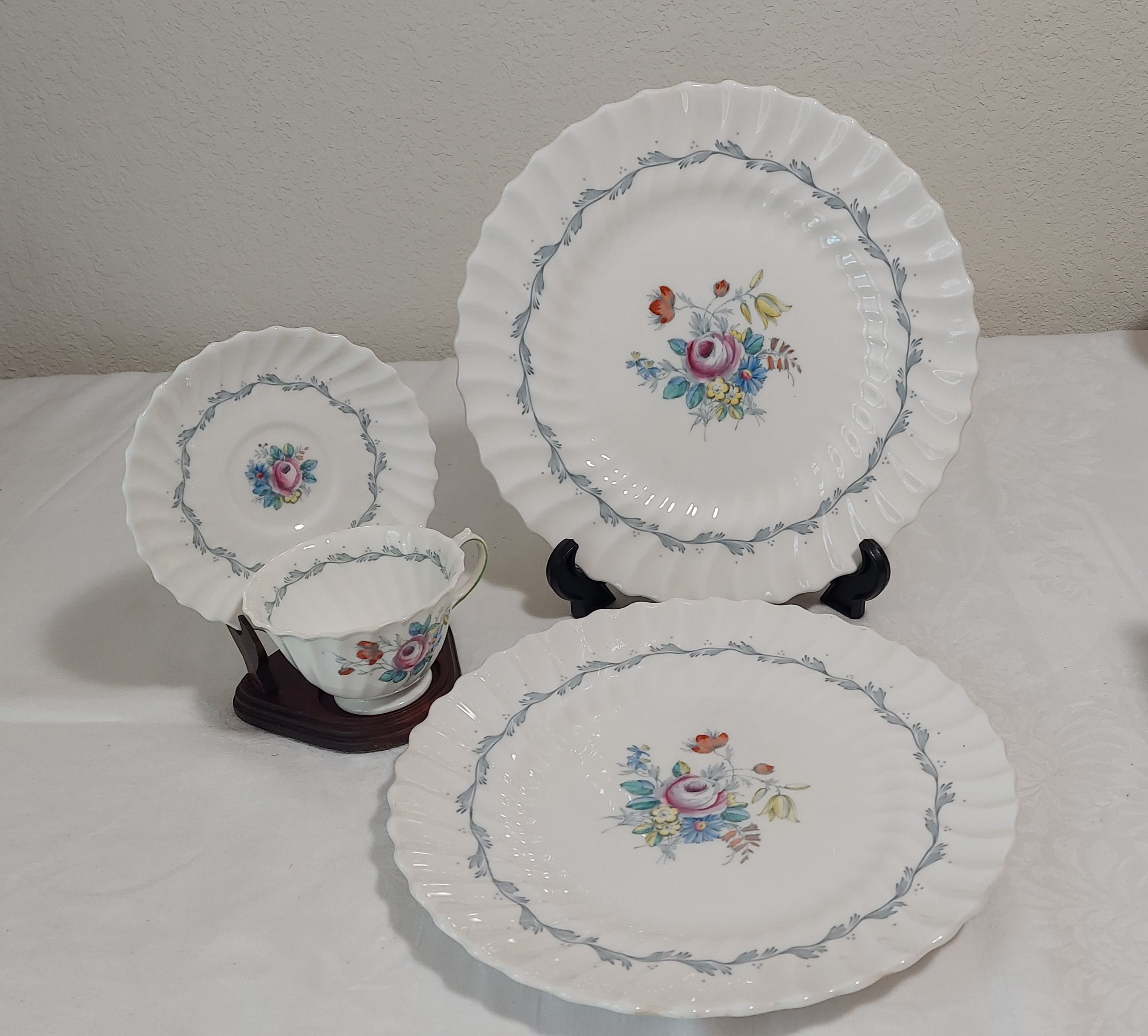 Here is a lovely little collection to fill out your set: teacup, saucer, two dinner plates. "The Chelsea Rose" is such a pretty pattern - I especially love the scalloped edges. Each piece is marked and signed.