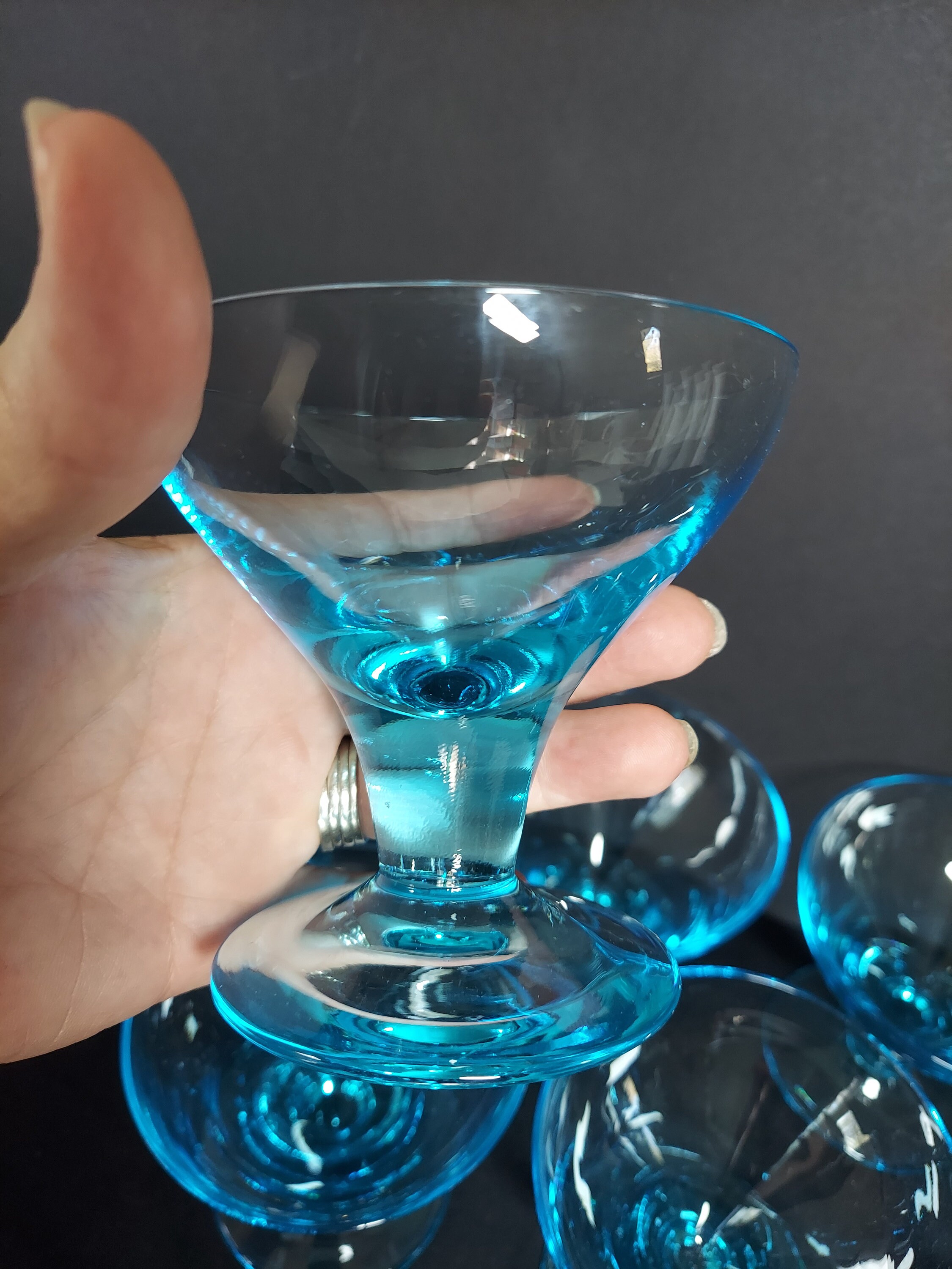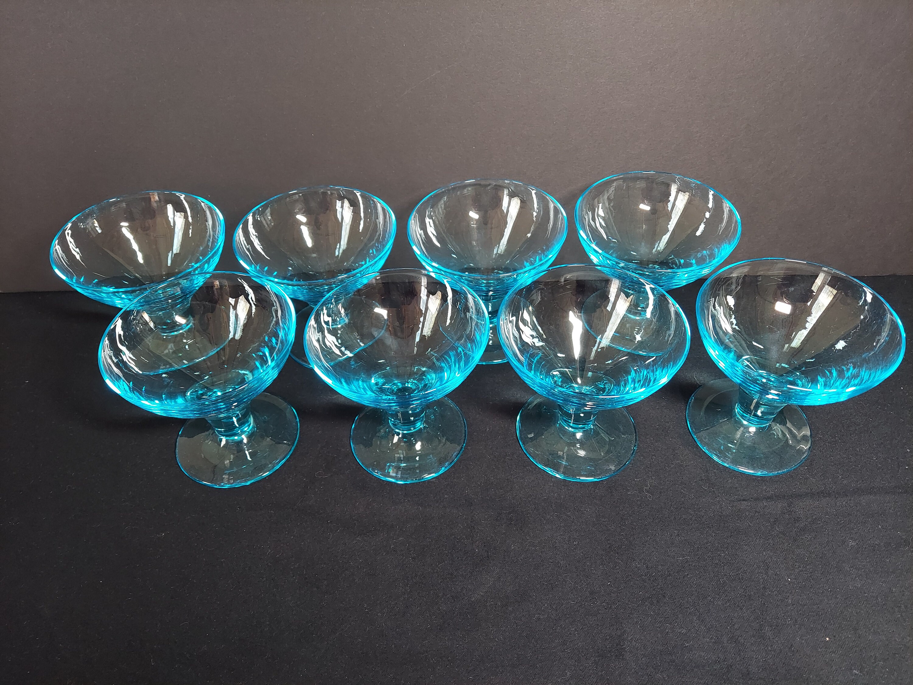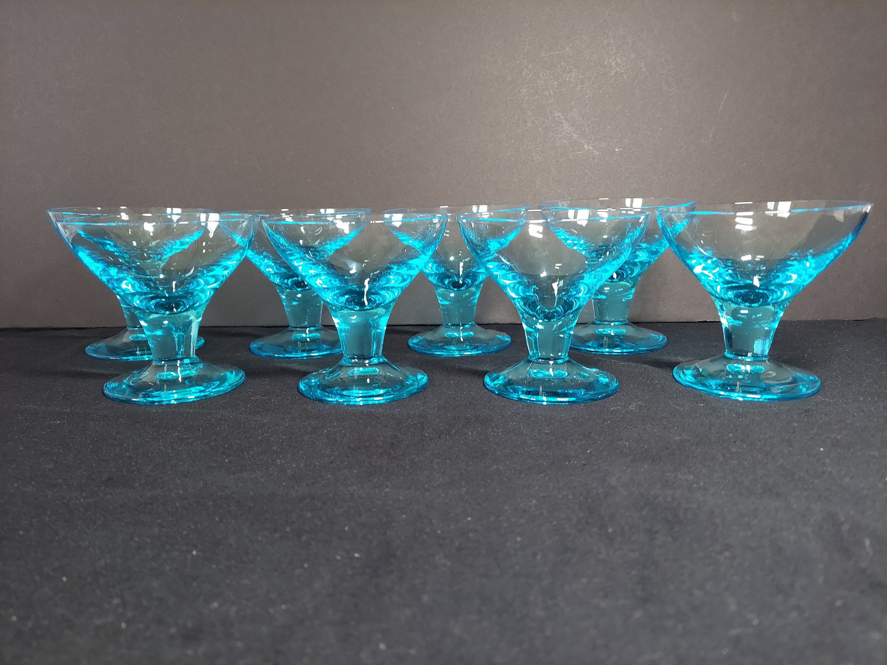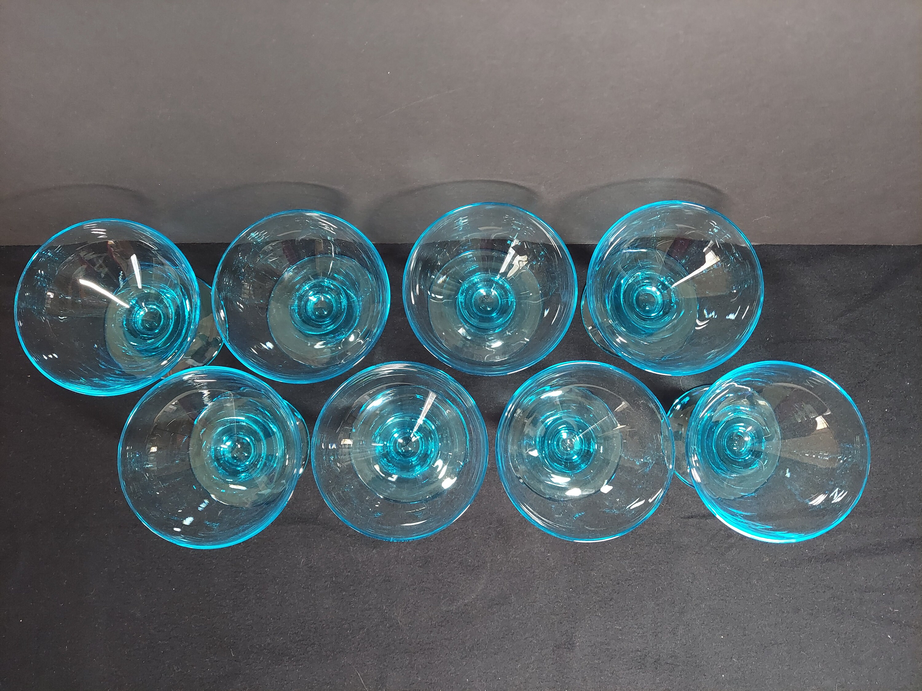 BRYCE, set of 8, "Mode" in Cerulean Blue Footed Glasses