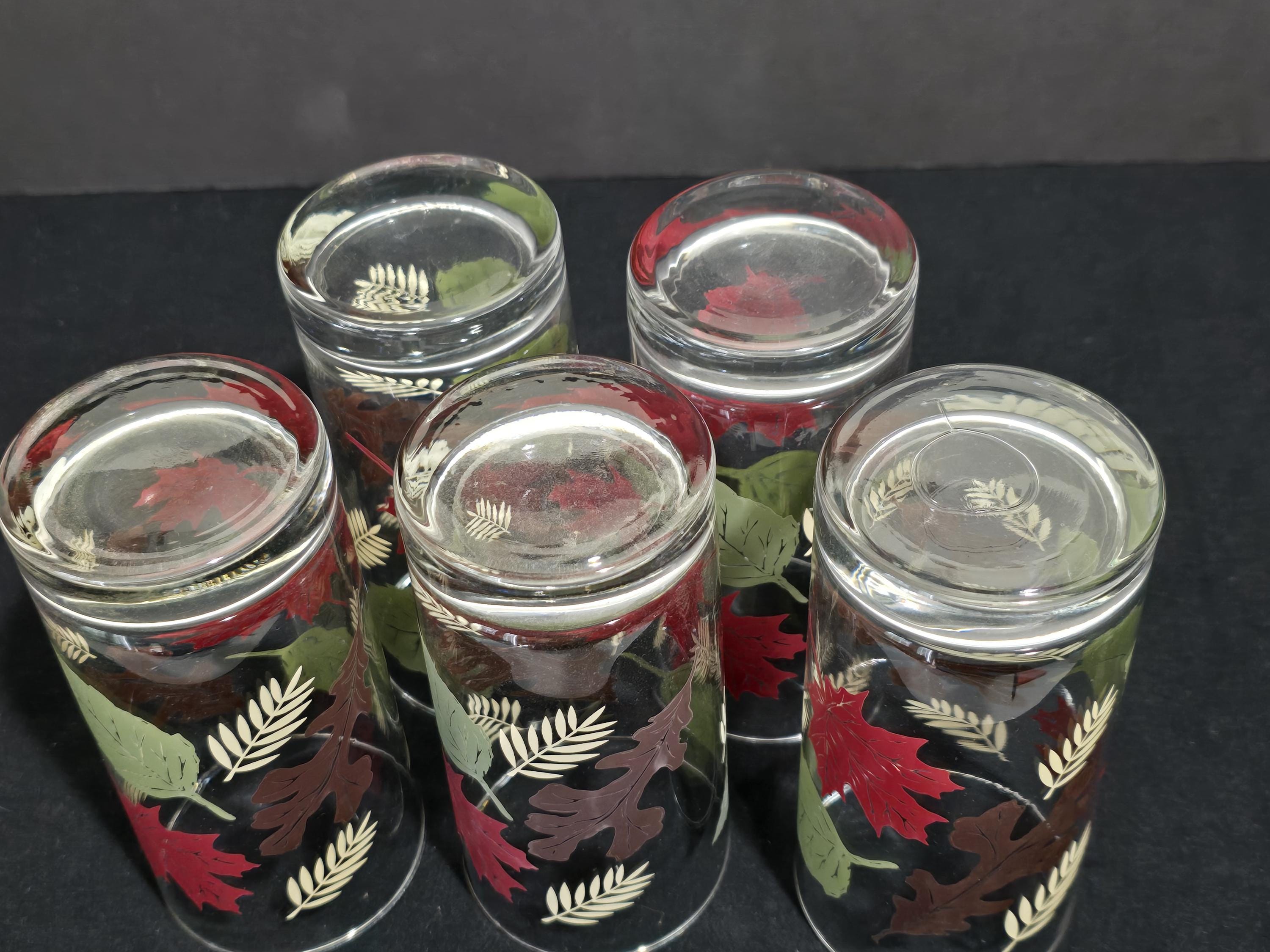 Excellent condition, there are no chips, cracks or hazing. The decals are all bright and intact. There is a funky thing happening on the bottom of one of the tumblers. Looks like a little extra molten glass...? It doesn't affect the function or appeal of the glassware. Please see the photos and feel free to message with any questions. Thank you for visiting Redux Vintage Boutique.