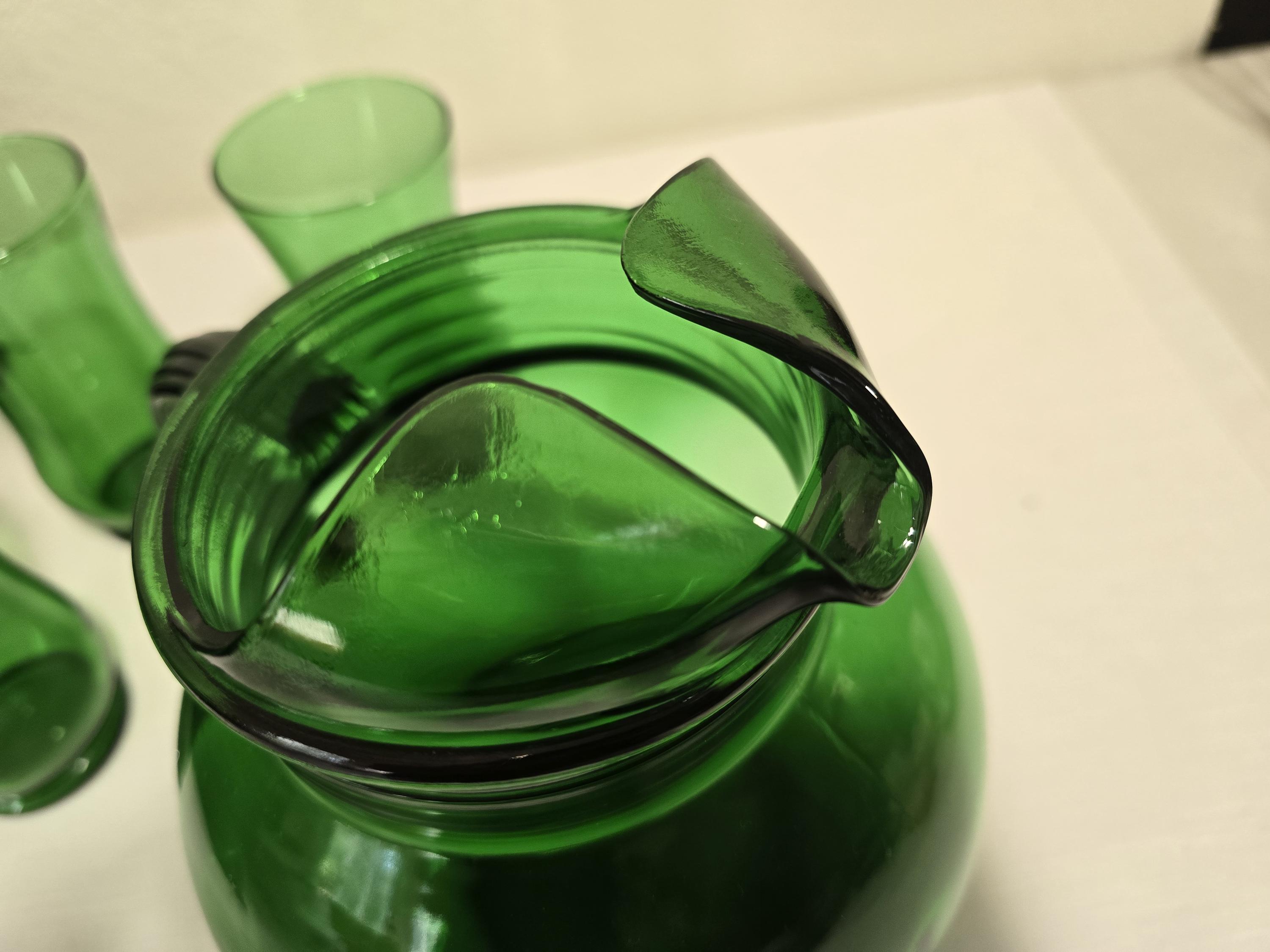 The set has no cracks, nicks, or haze. The tumblers stand 5-7/8 inches high and hold 15 ounces. The pitcher holds 96 ounces. Please check out the photos and feel free to message with any questions. Thanks for visiting Redux Vintage Boutique.