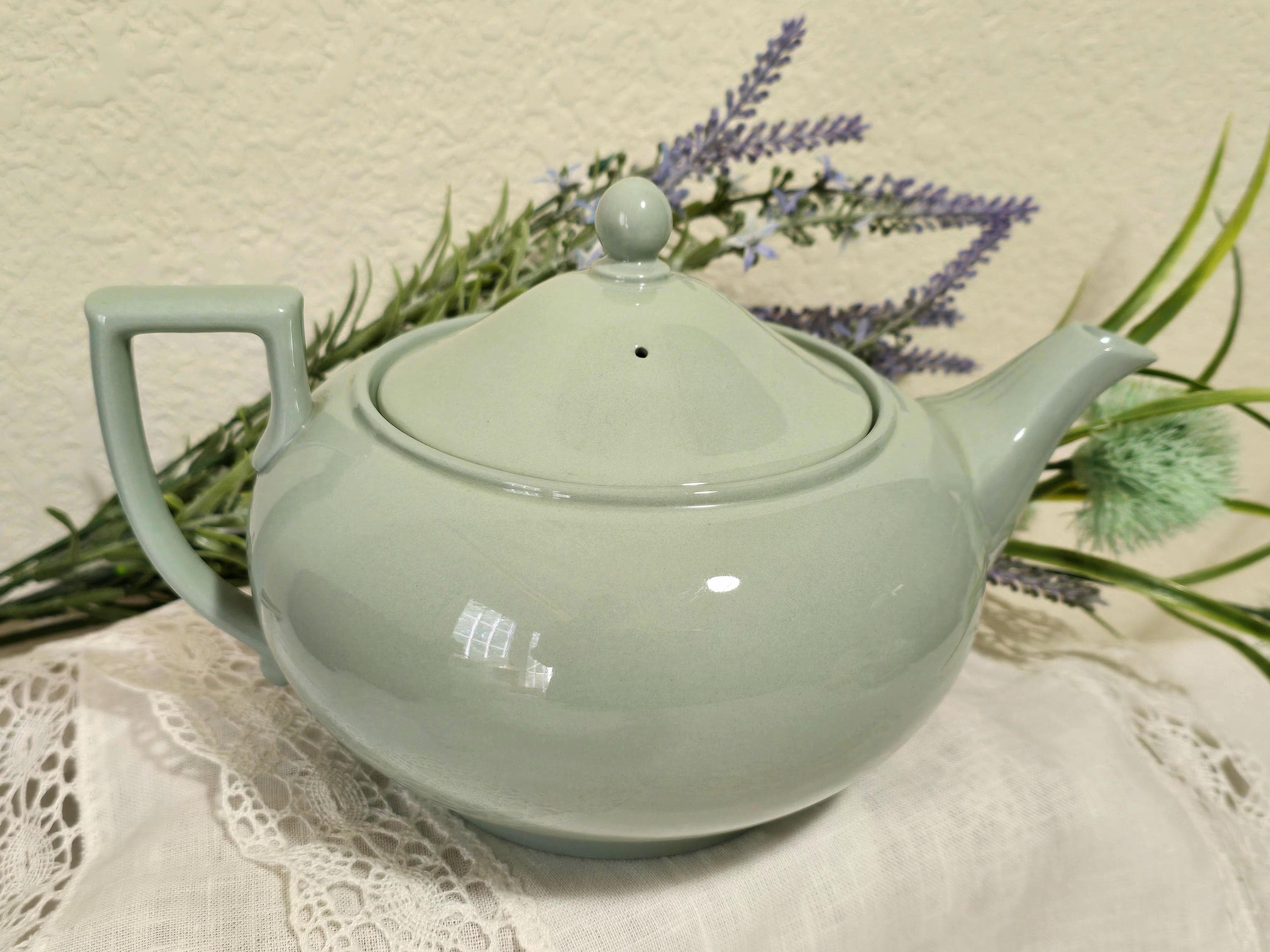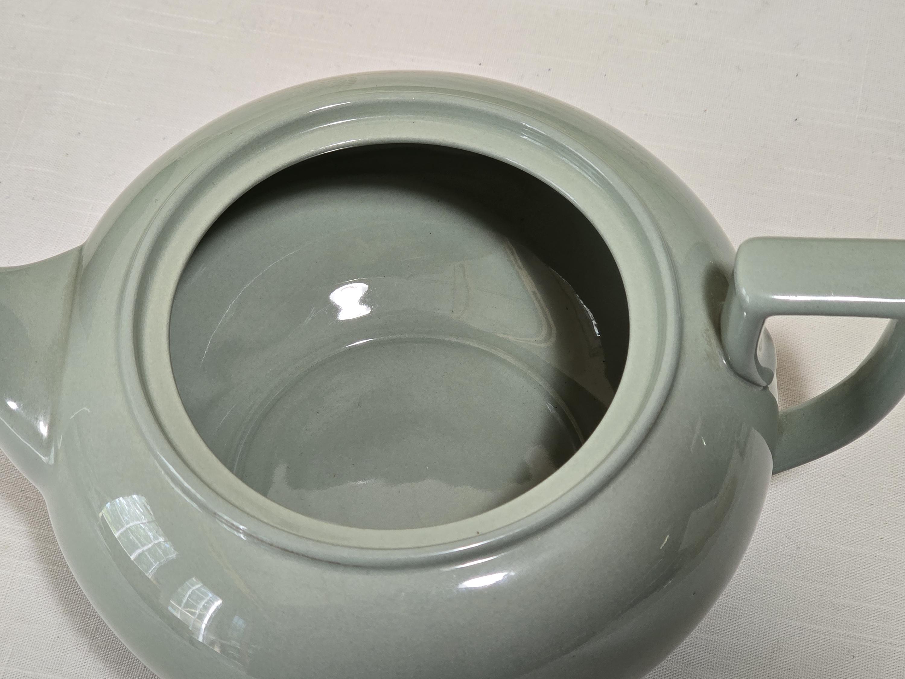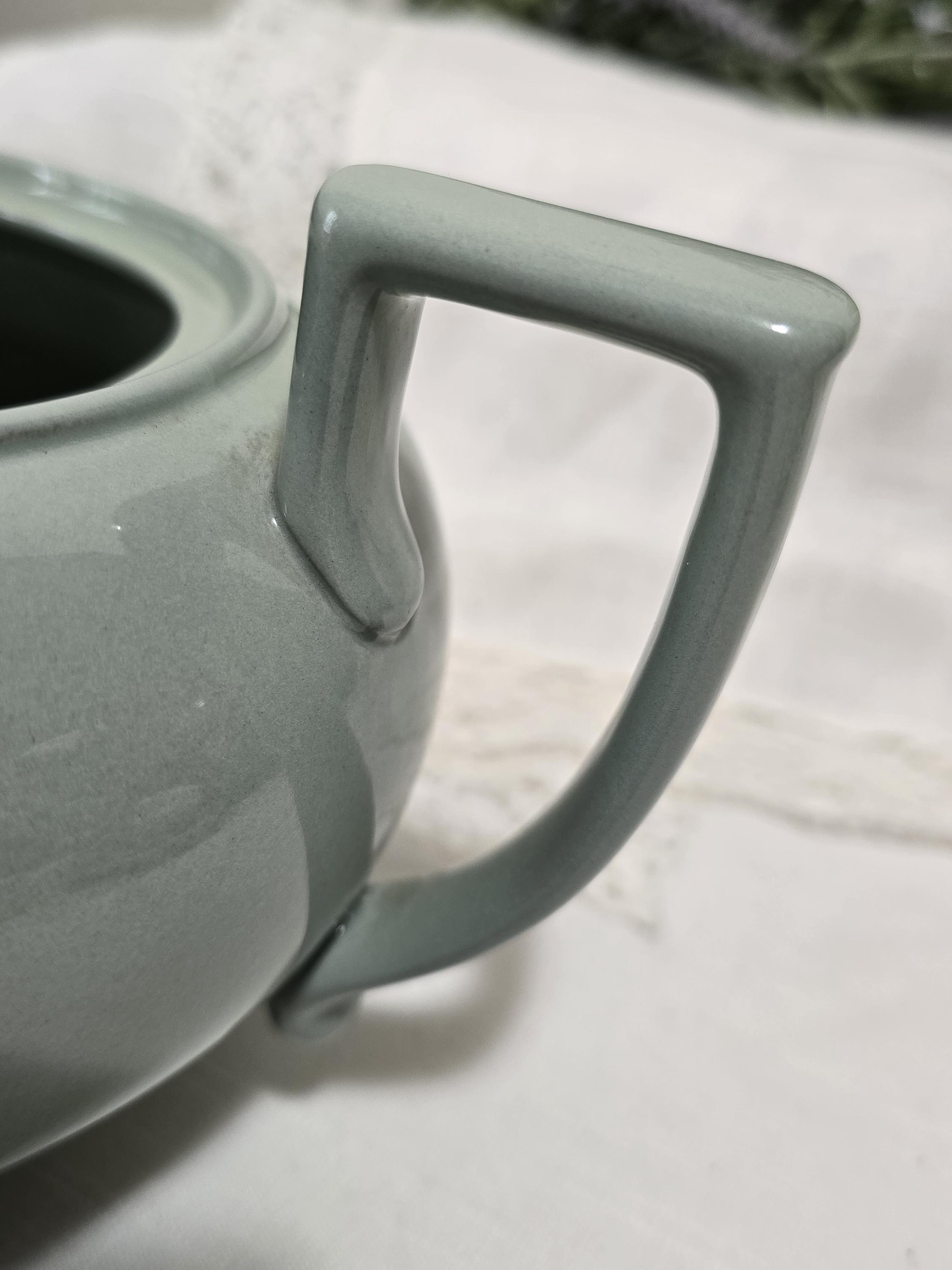 Wedgwood Celadon teapot, in excellent condition. This pattern was produced between 1940 and 1969 by Wedgwood of Etruria and Barlaston. The teapot is stamped in ink under the glaze, with an incised hallmark. Excellent vintage condition.