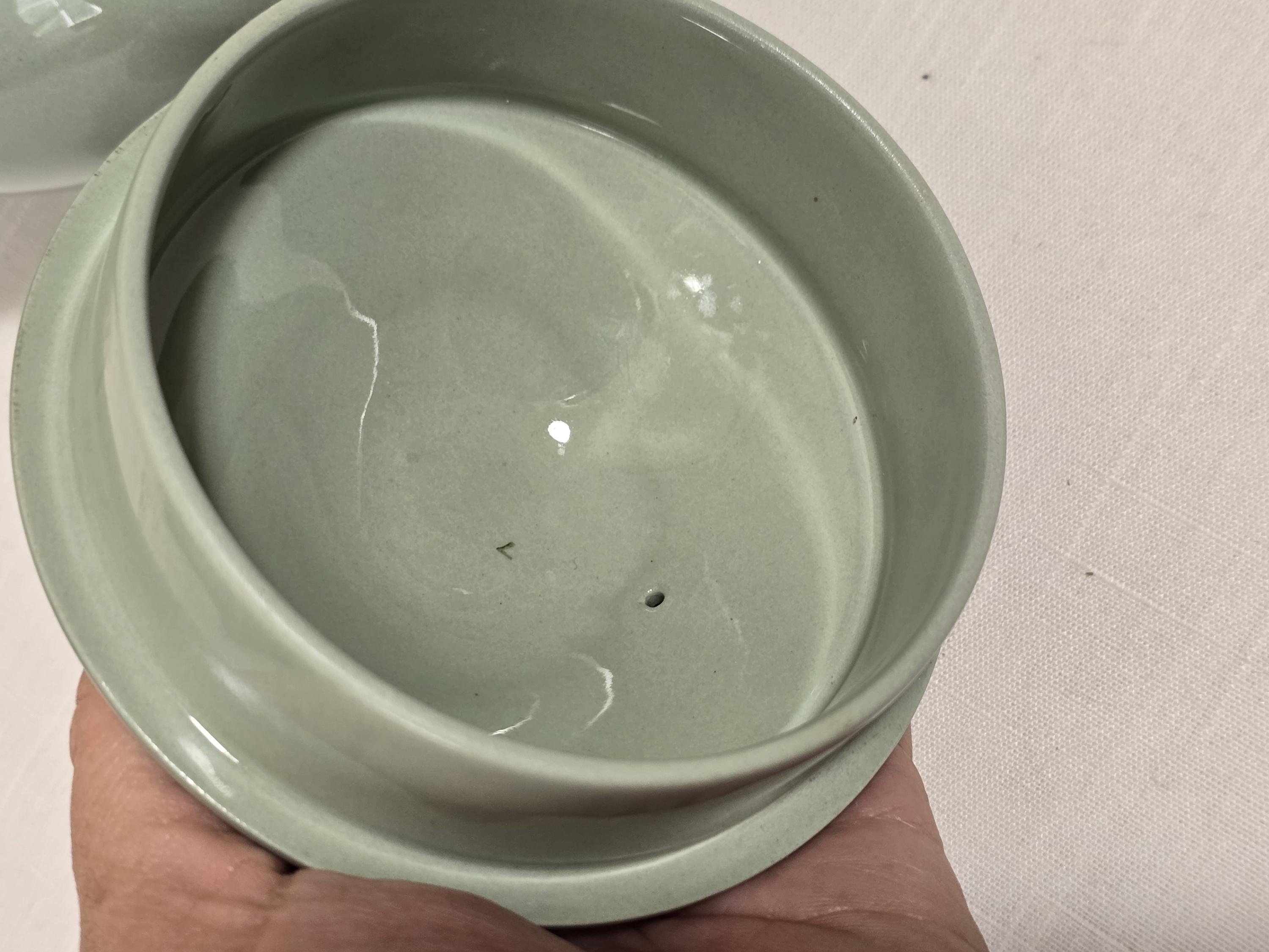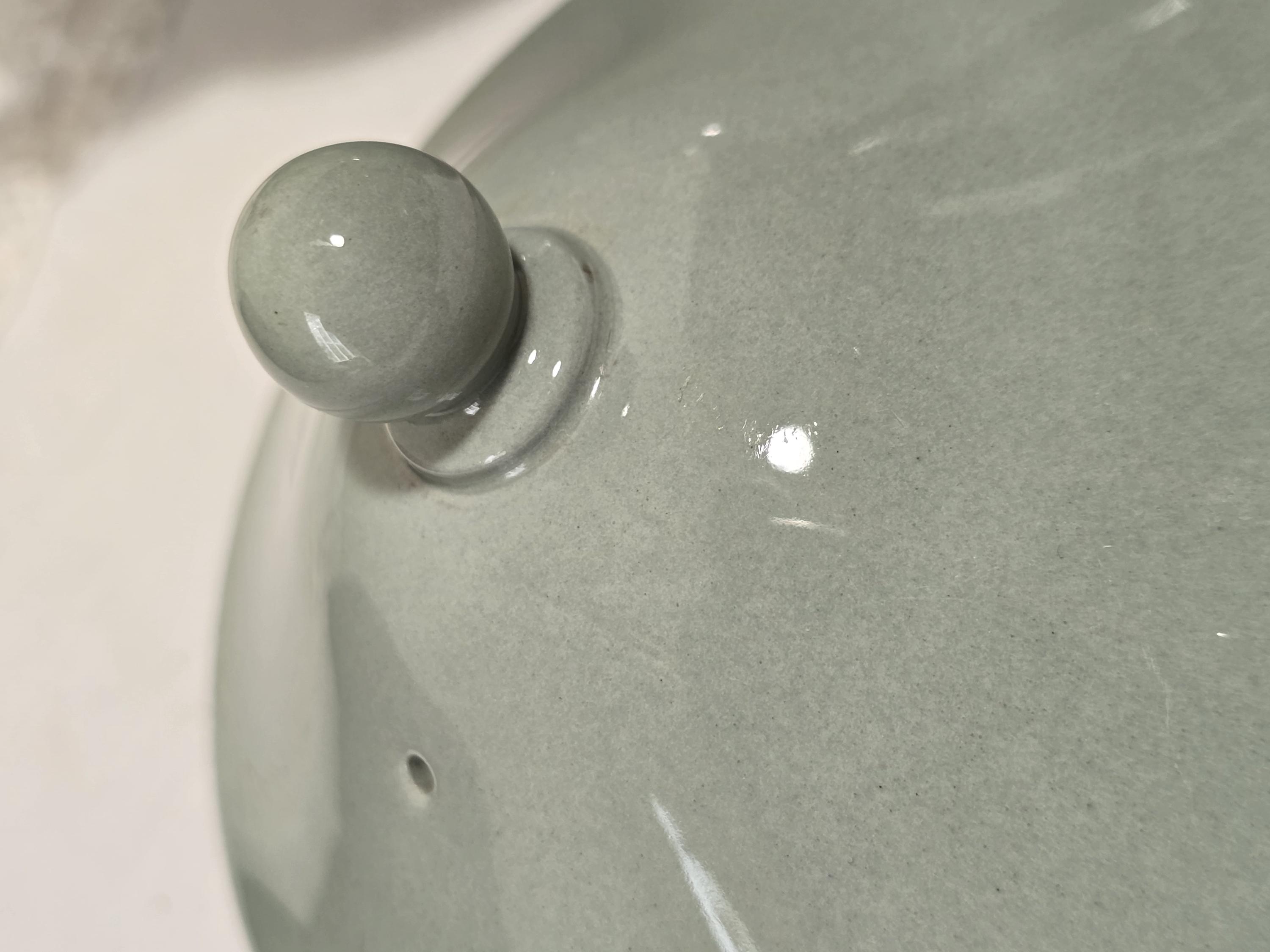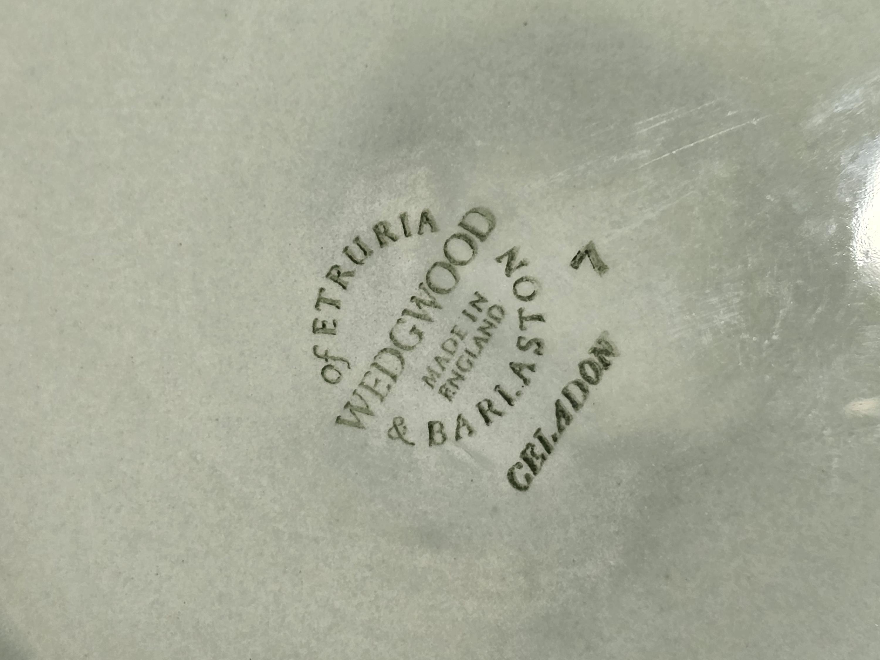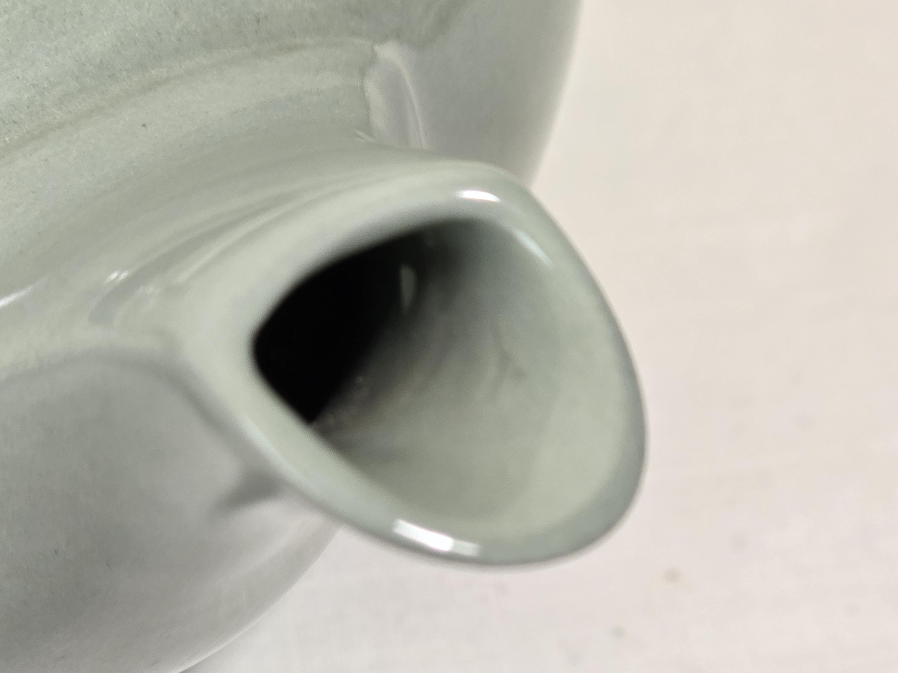Wedgwood Celadon teapot, in excellent condition. This pattern was produced between 1940 and 1969 by Wedgwood of Etruria and Barlaston. The teapot is stamped in ink under the glaze, with an incised hallmark. Excellent vintage condition.