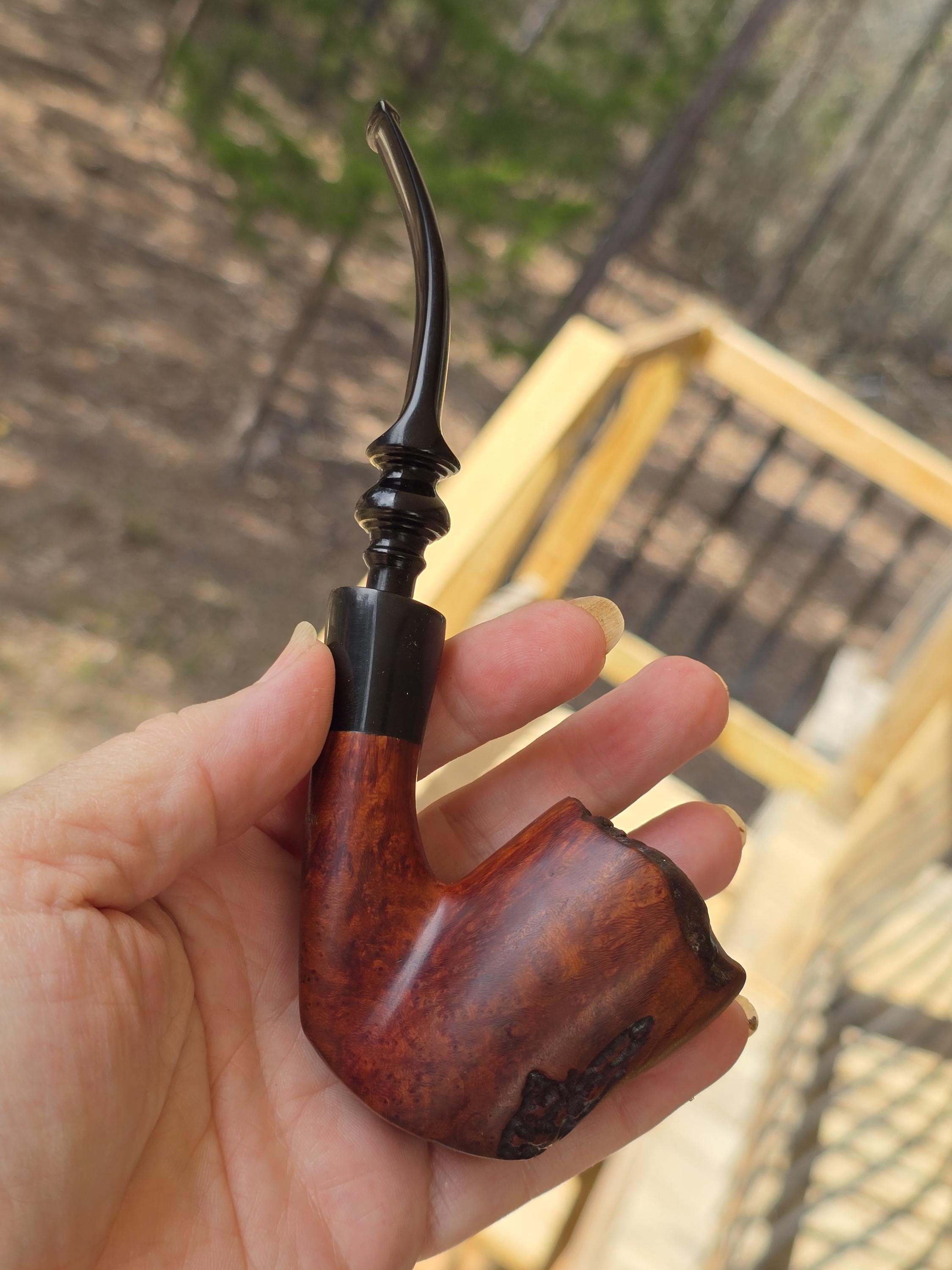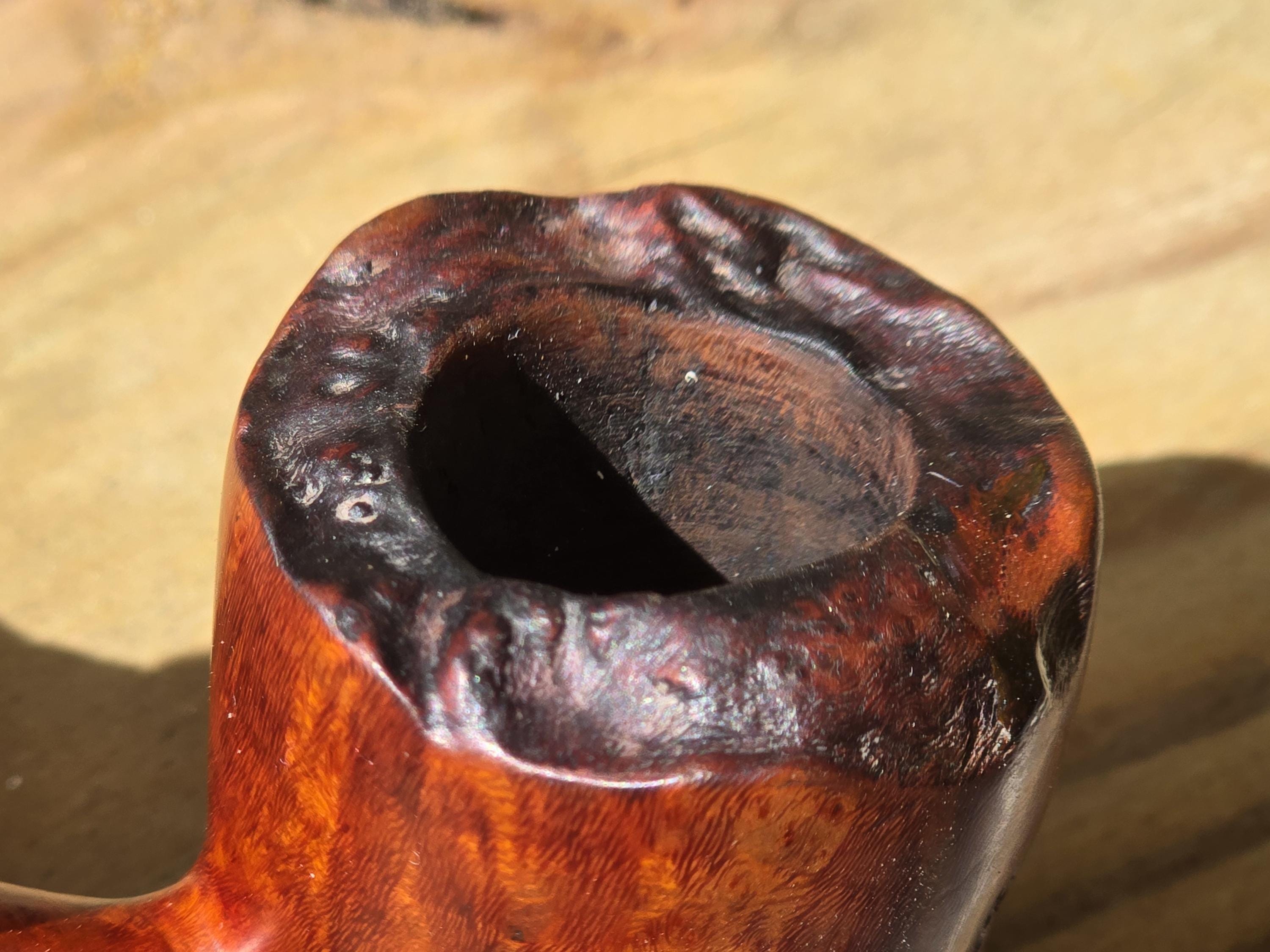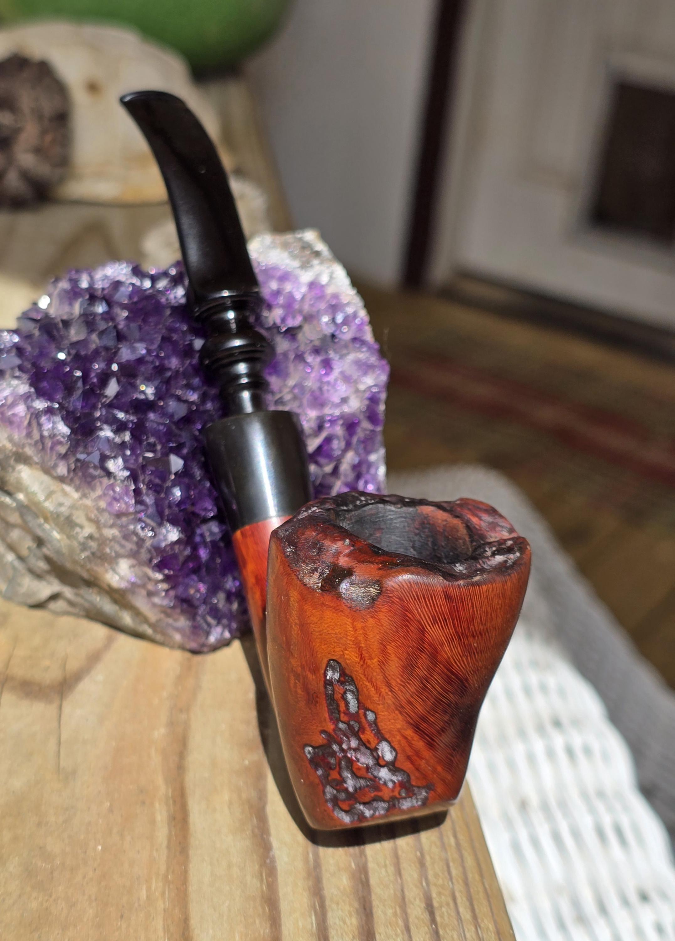 The inside of the bowl has been taken down to wood and the internals are cleaned with alcohol. The fancy-cut stem has been polished up, showing only a single tooth mark on the under side. Please check out the photos and feel free to message with any questions. Thank you for visiting Redux Vintage Boutique.