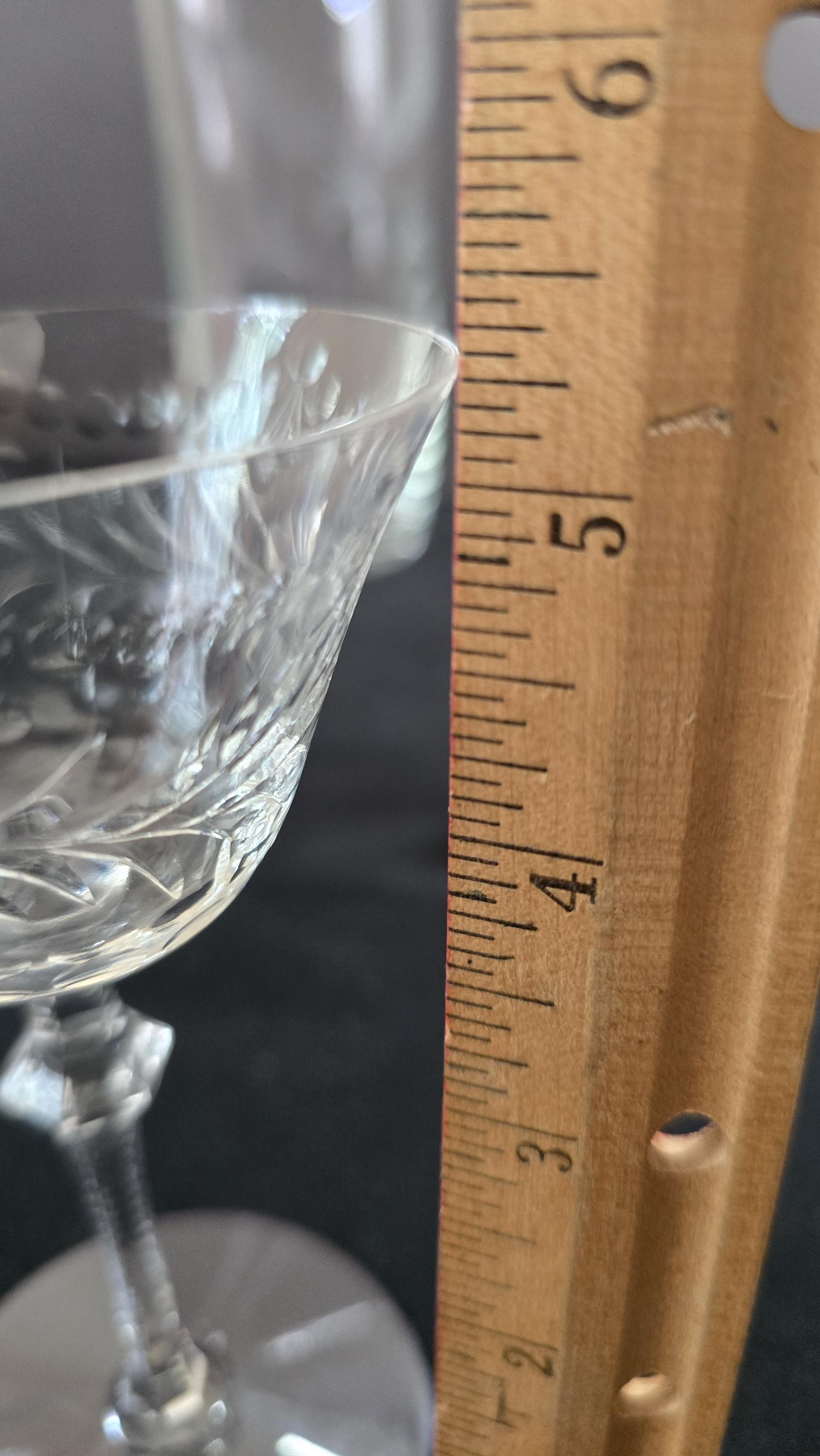 Condition is excellent - without scratches, nicks, or hazing. Each glass stands 5-1/4 inches tall. They will hold about 3 oz. Please feel free to message with any questions. Thank you so much for visiting Redux Vintage Boutique.