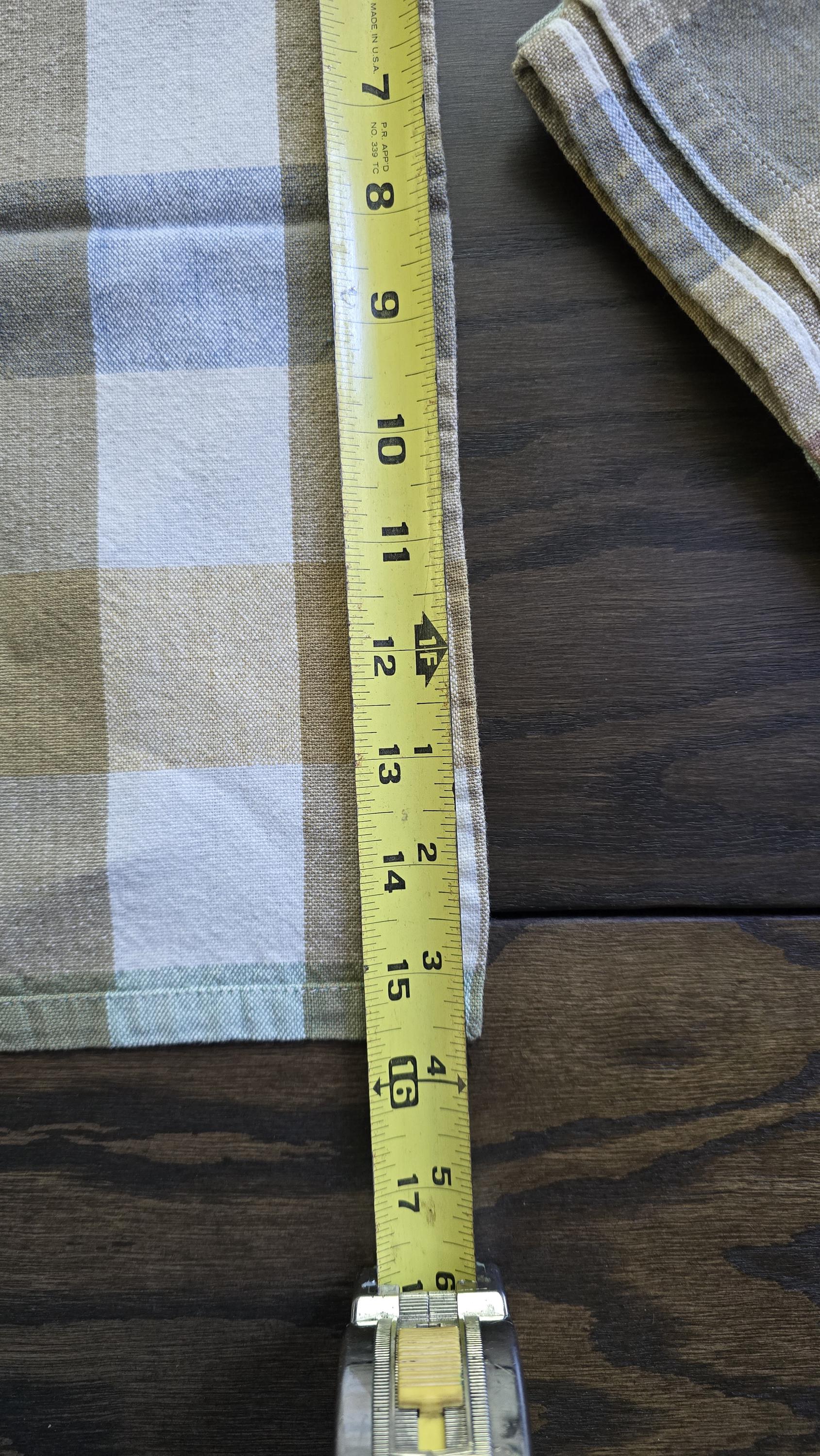 Napkins are 15.5 inches square. The material is cotton; possibly cotton-blend. There is no tag. They're in great condition. No stains, holes, or fraying. The colors are pastel brown, pink, green, and turquoise. Please feel free to message with any questions. Thank you for visiting Redux Vintage Boutique.