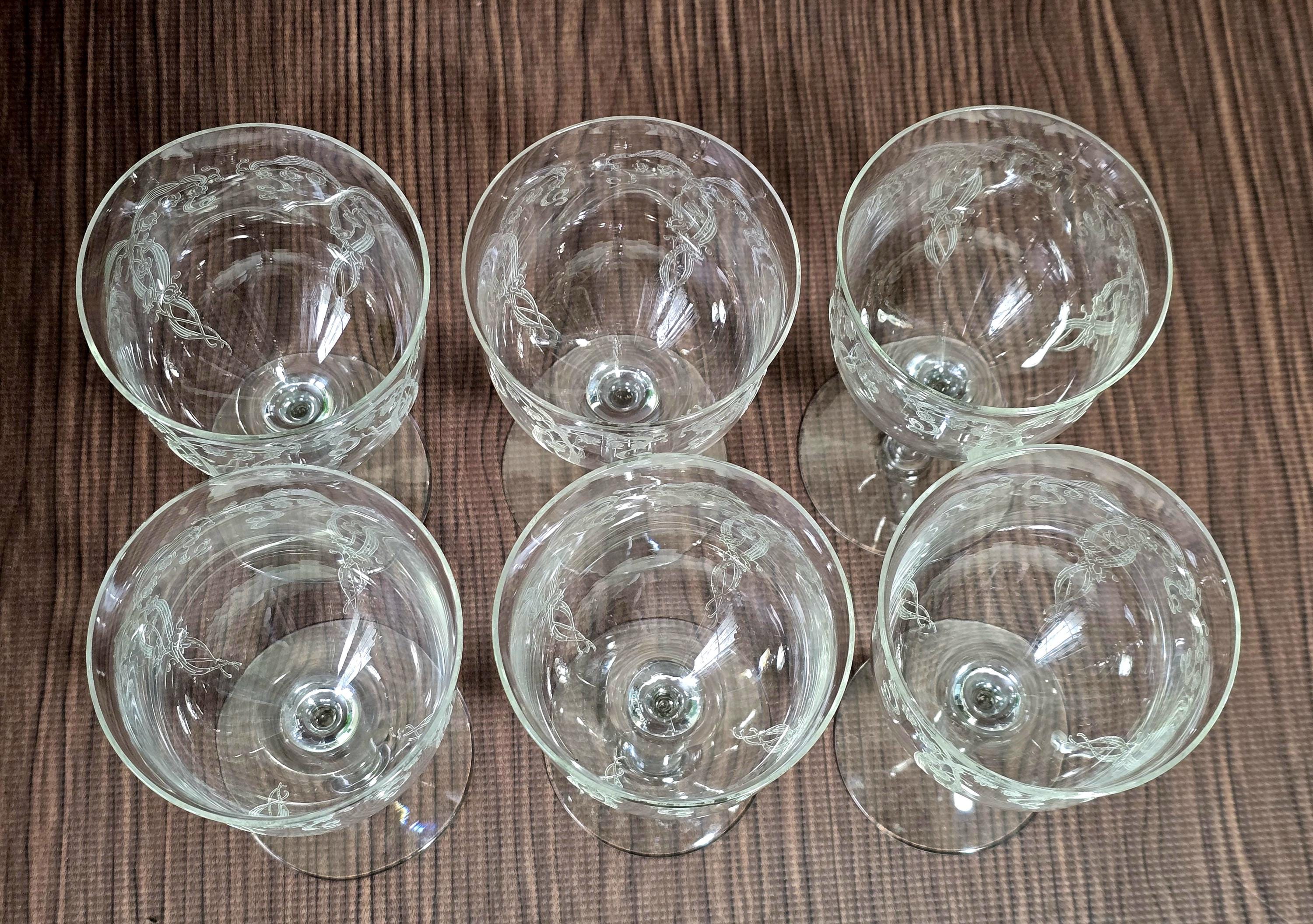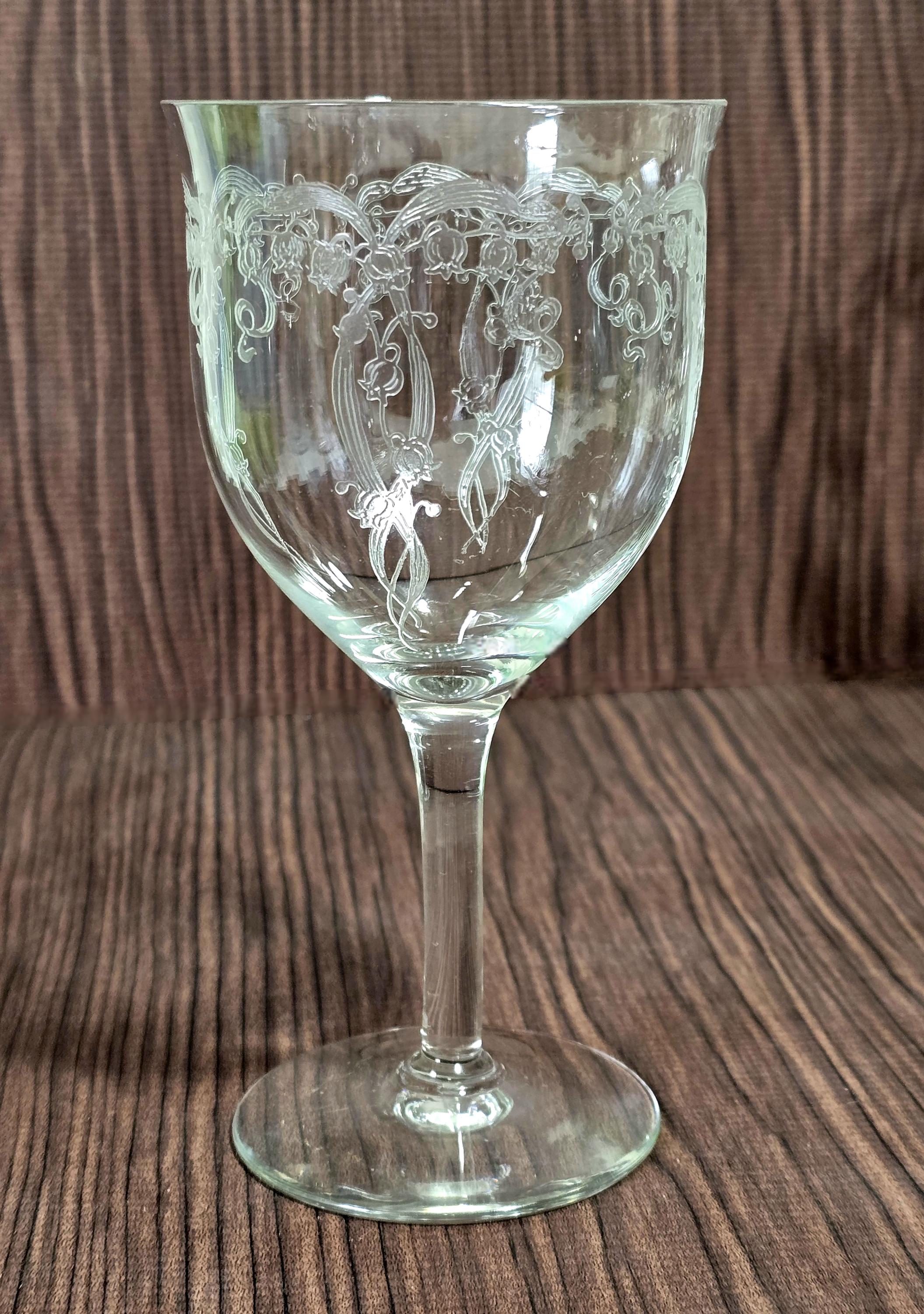 Set of 6 Antique FOSTORIA Etched-mold Goblets, c. 1917