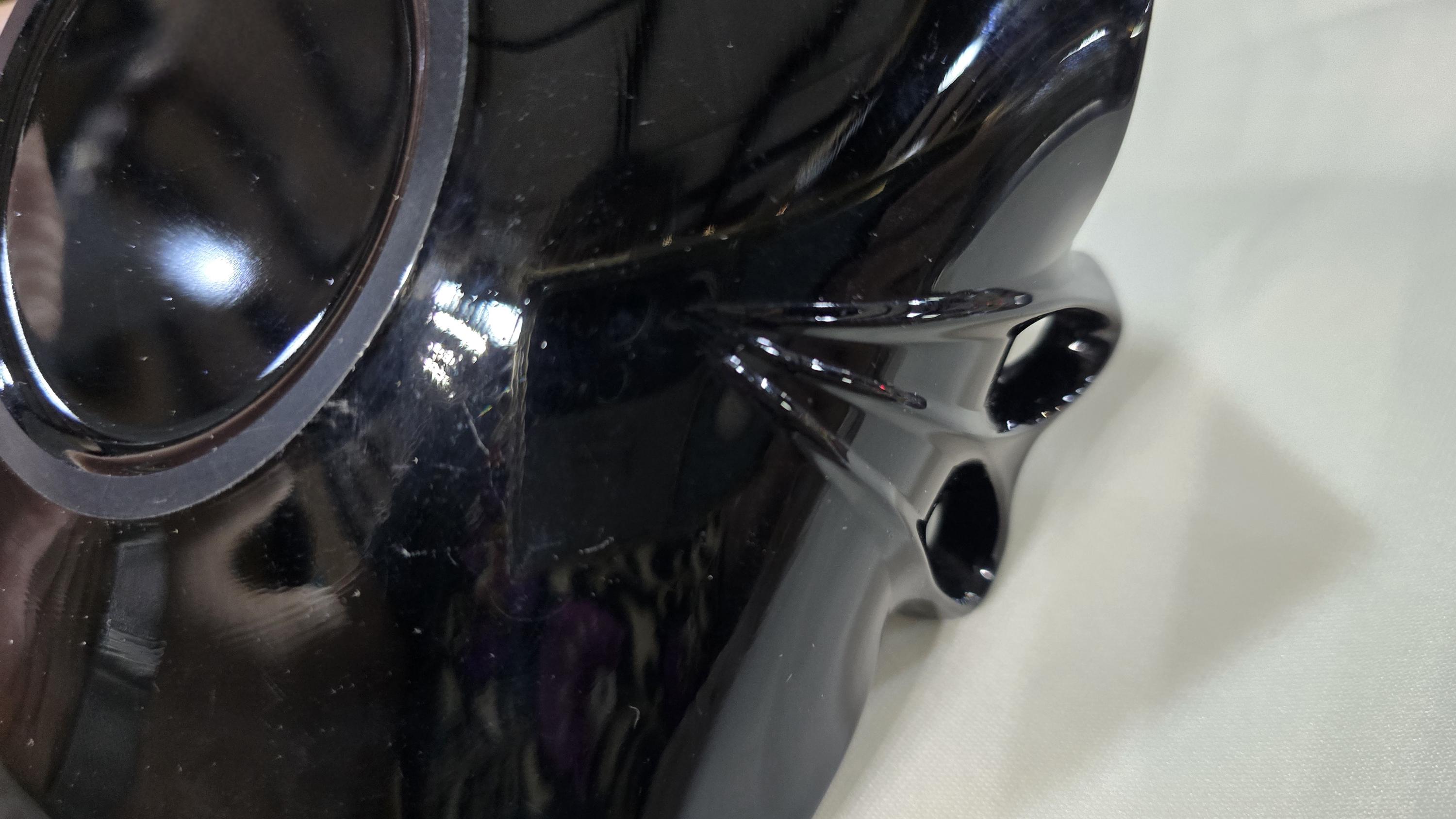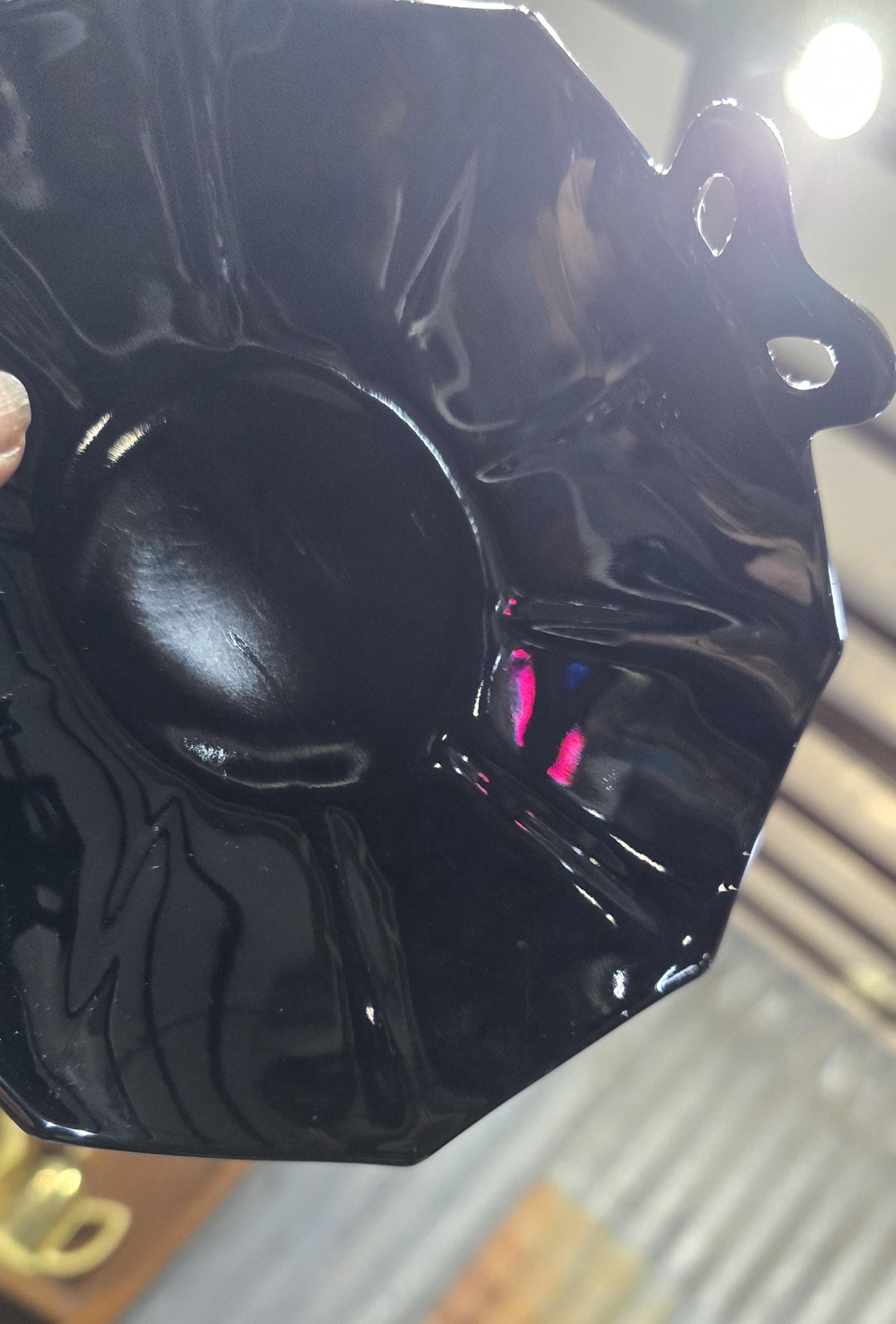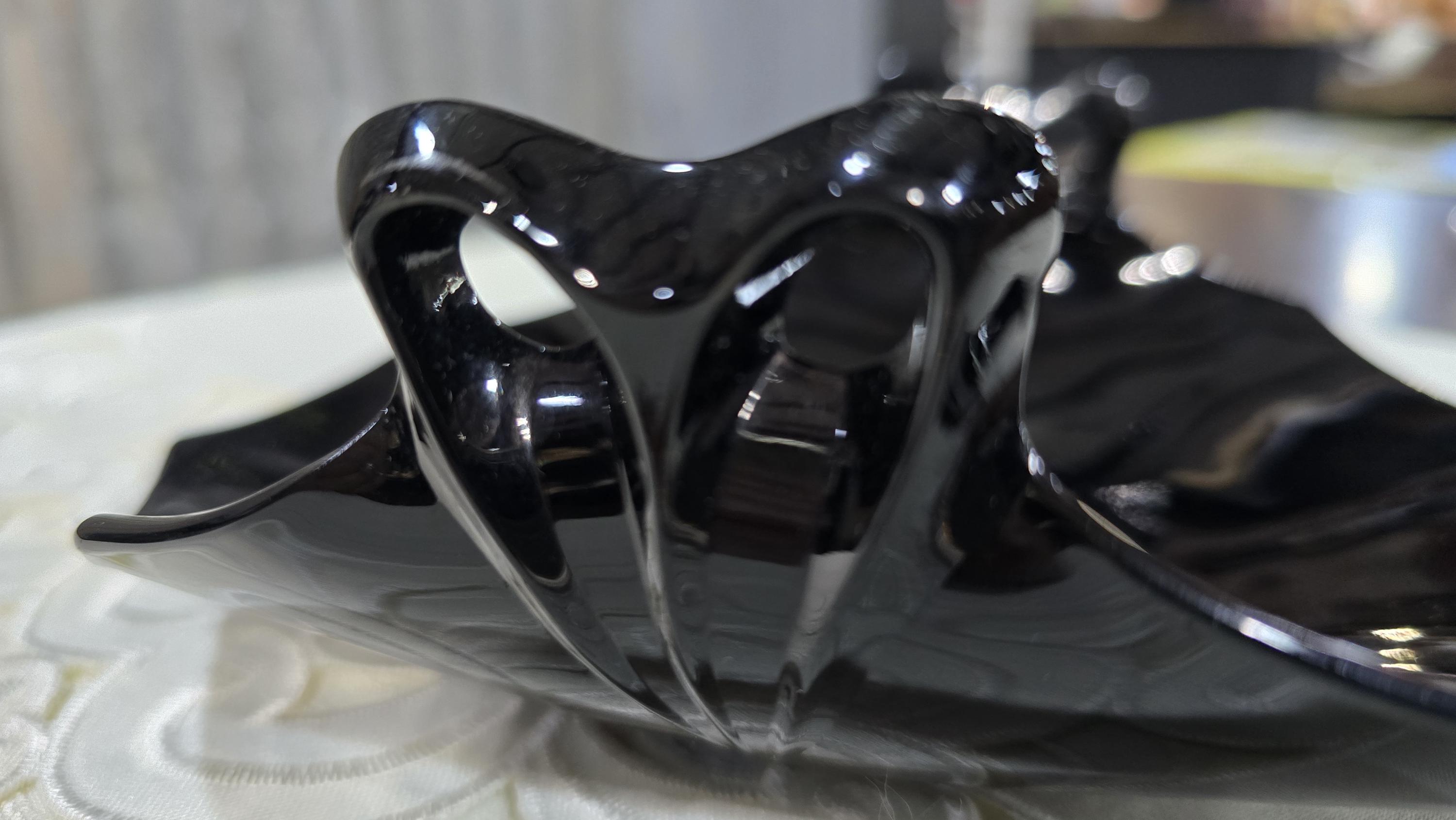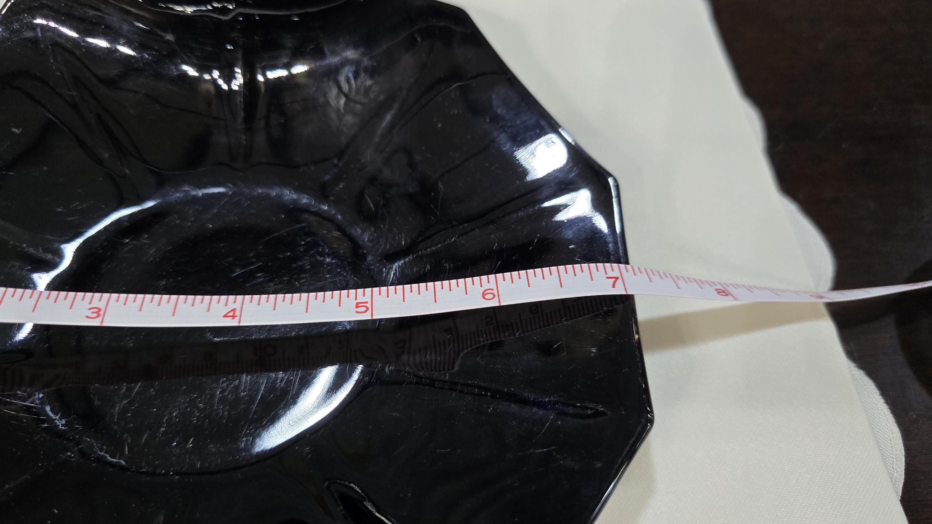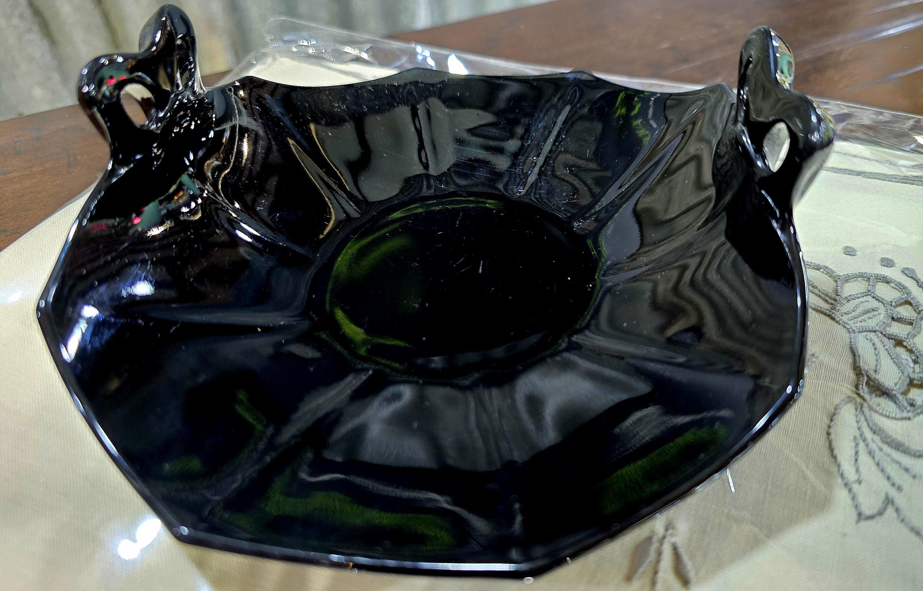 Called "black amethyst" glass, this piece will show up dark purple when hit with a strong light! This is Depression glass unlike any other.