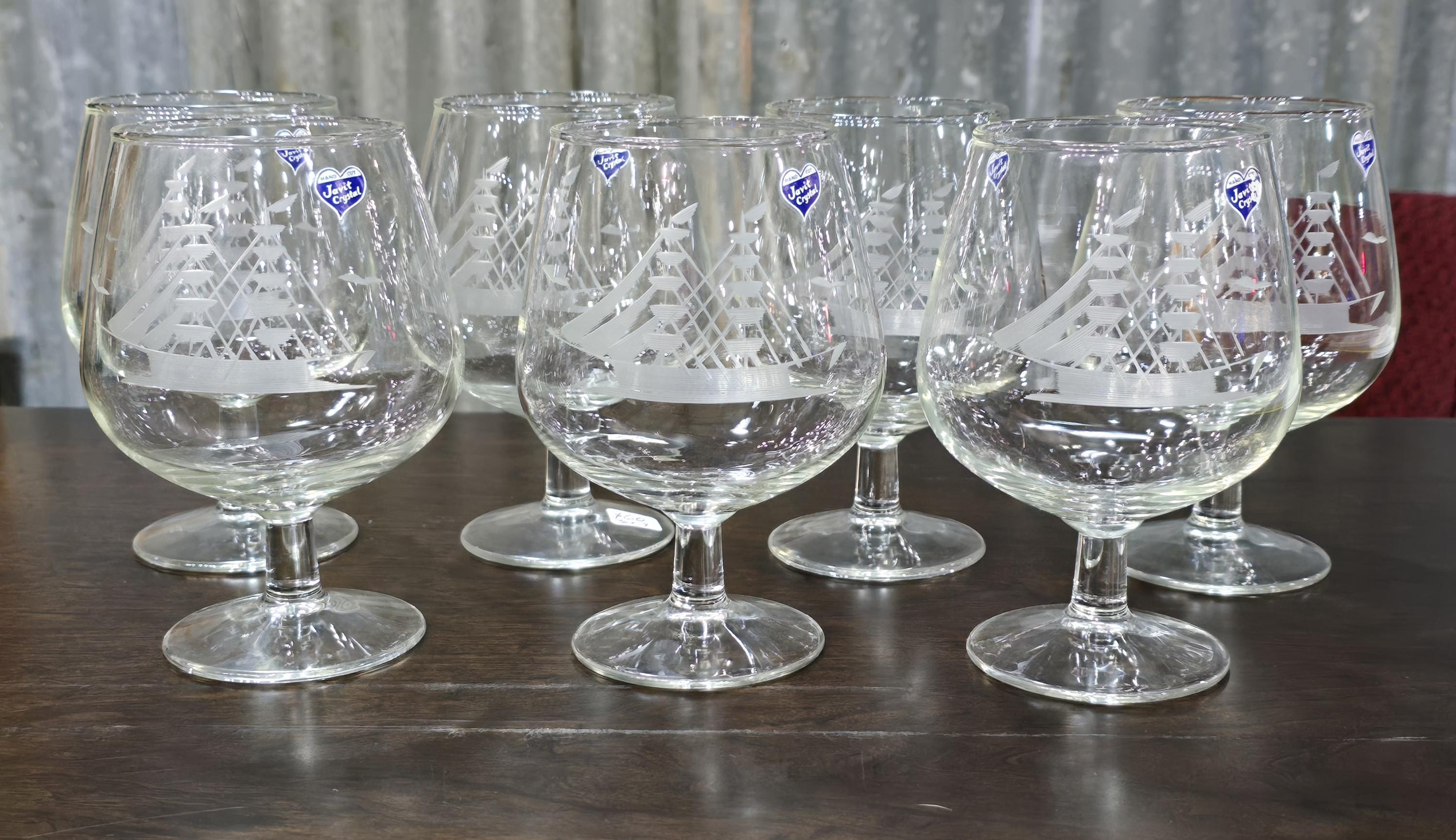 JAVIT Set of 7 "Clipper Collection" brandy glasses - large size!