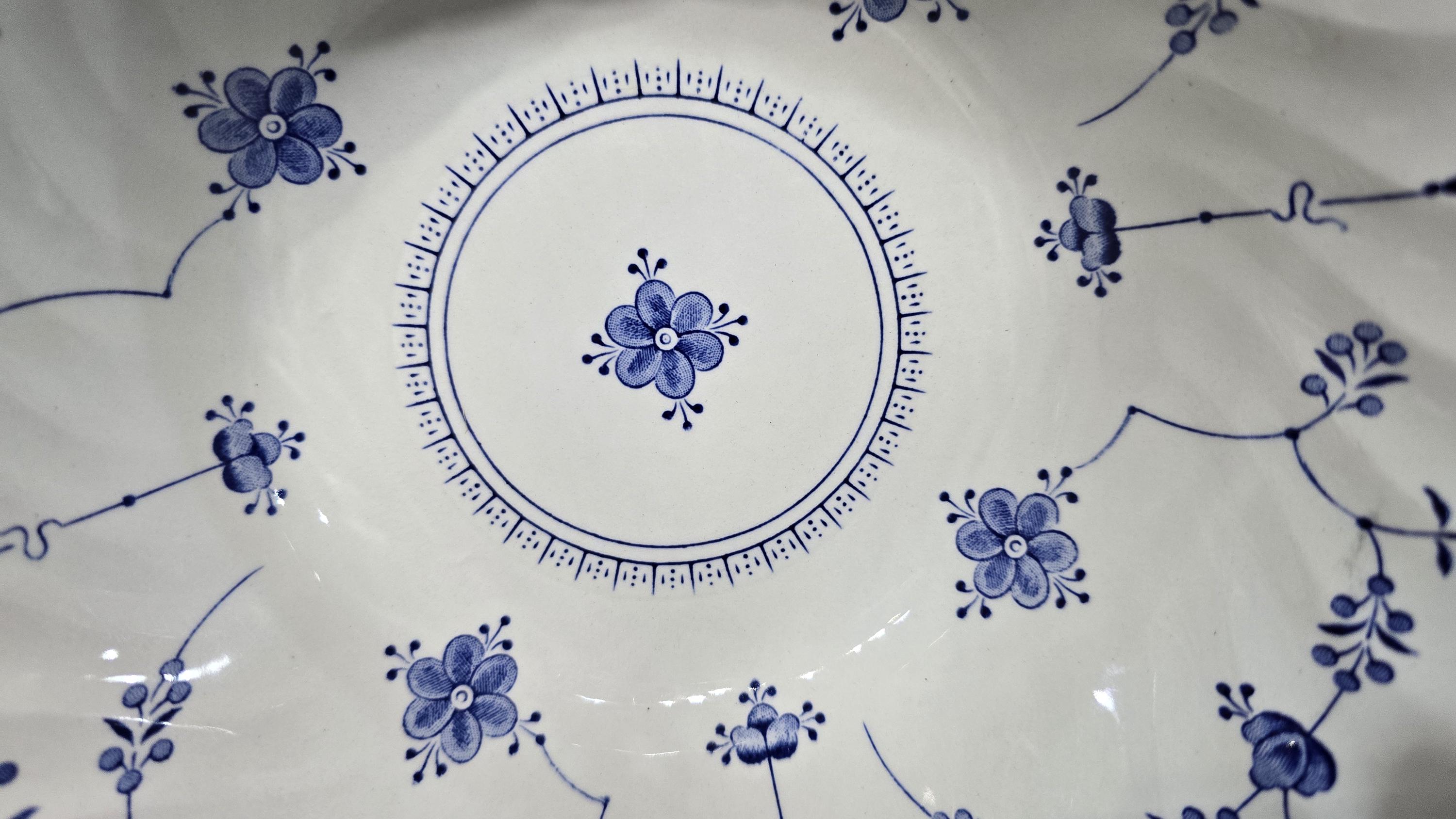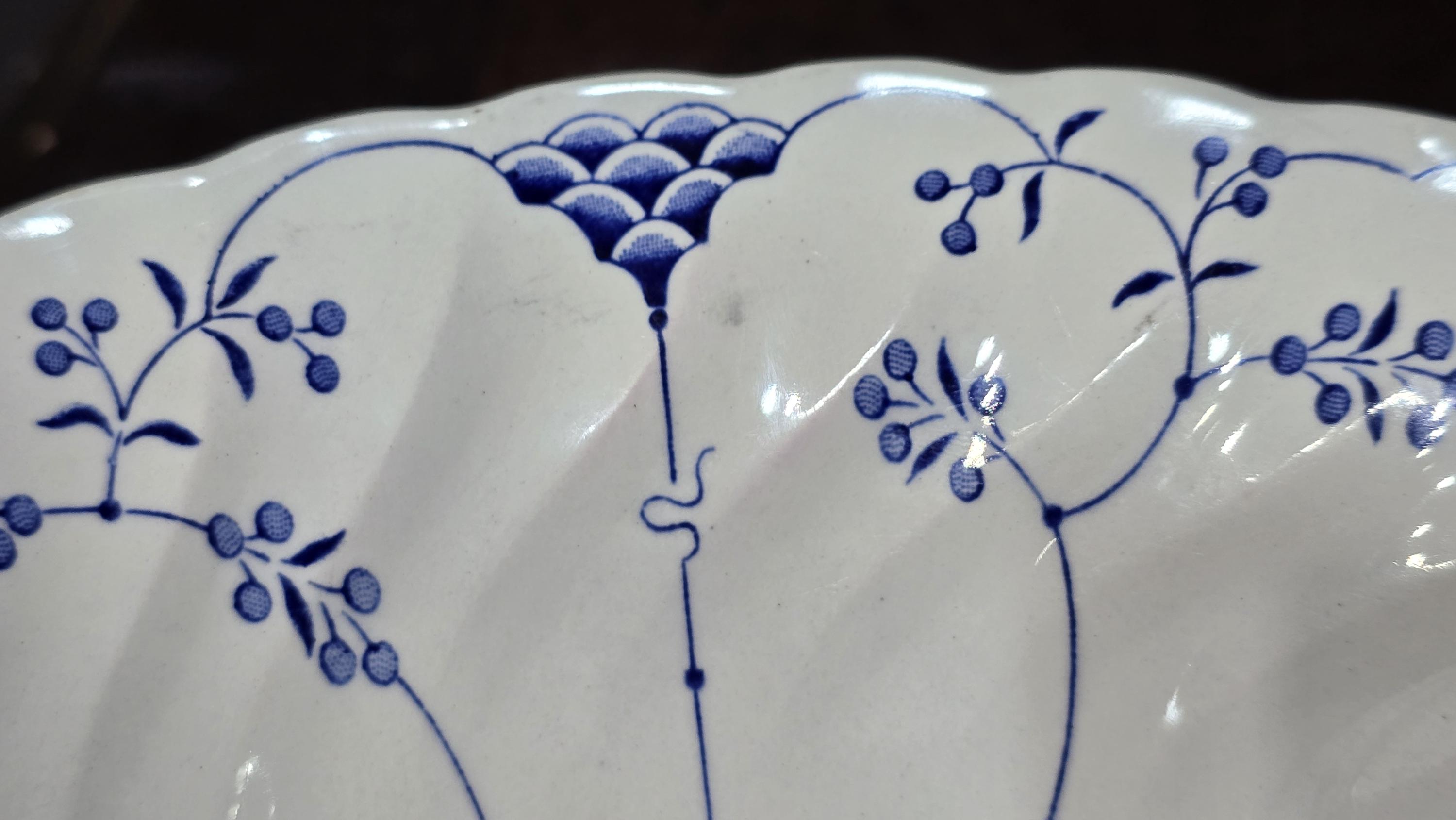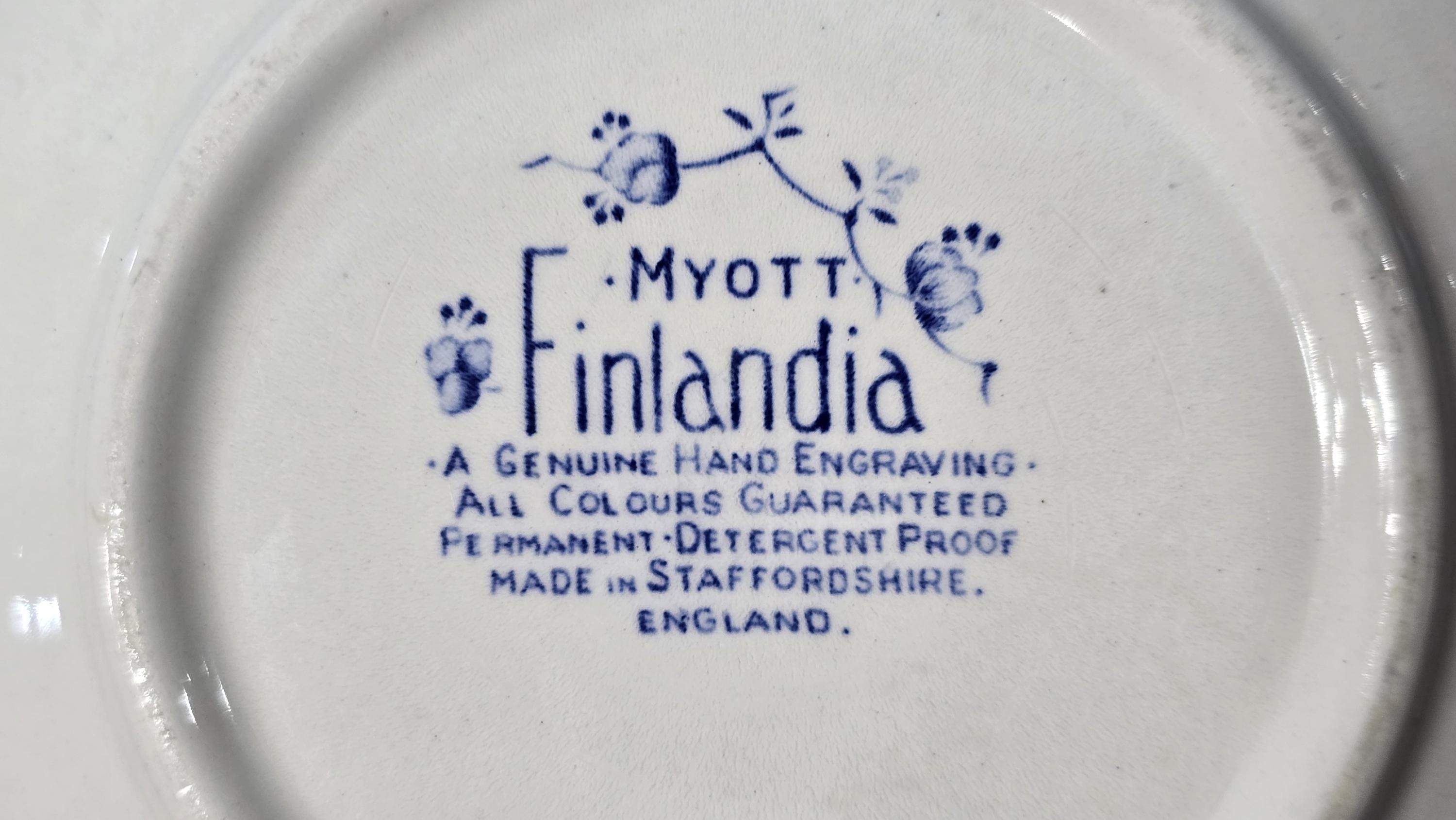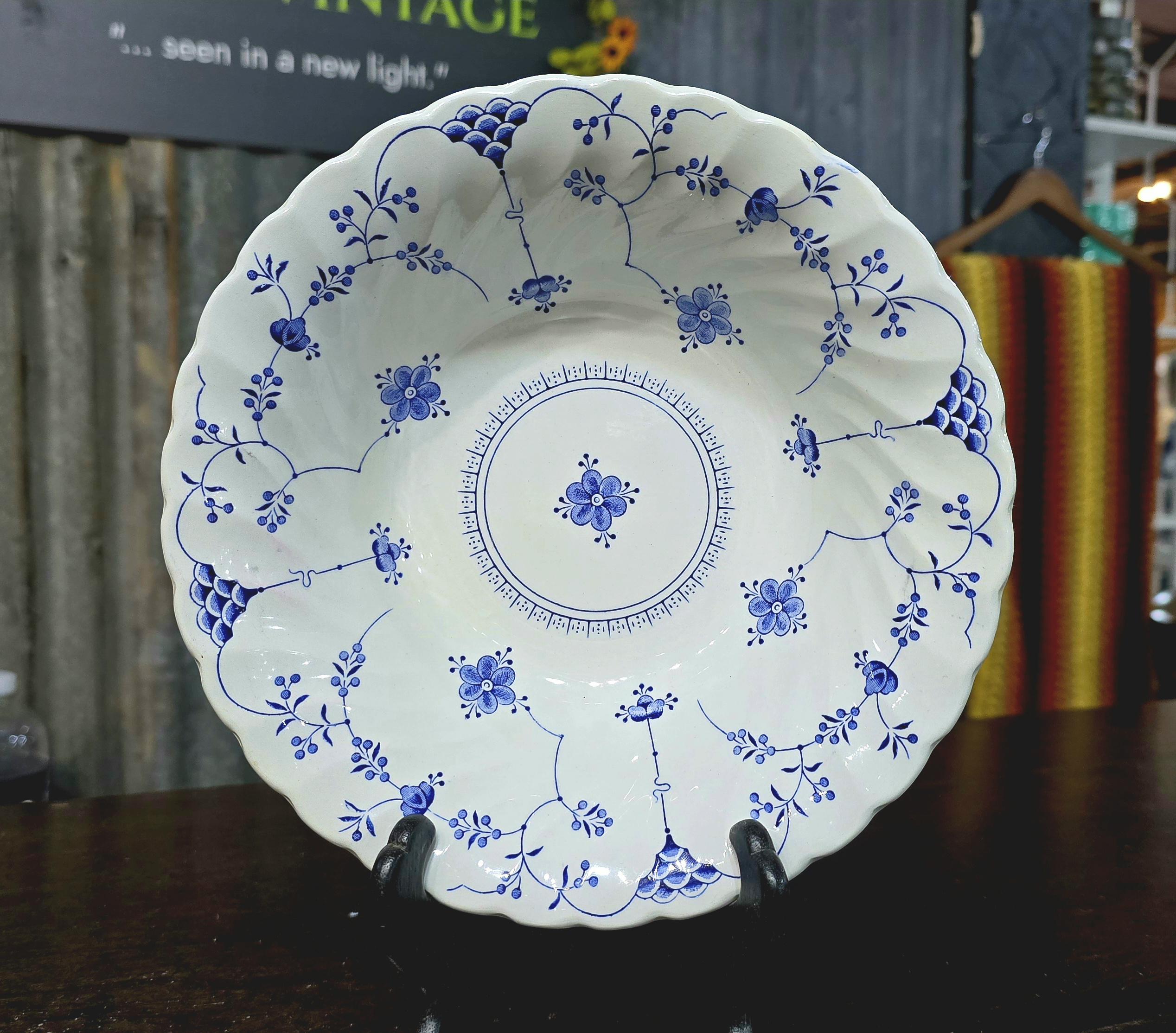 "Finlandia" pattern small serving bowl. Swirl edge. Excellent vintage condition. Myott/Staffordshire backstamp.