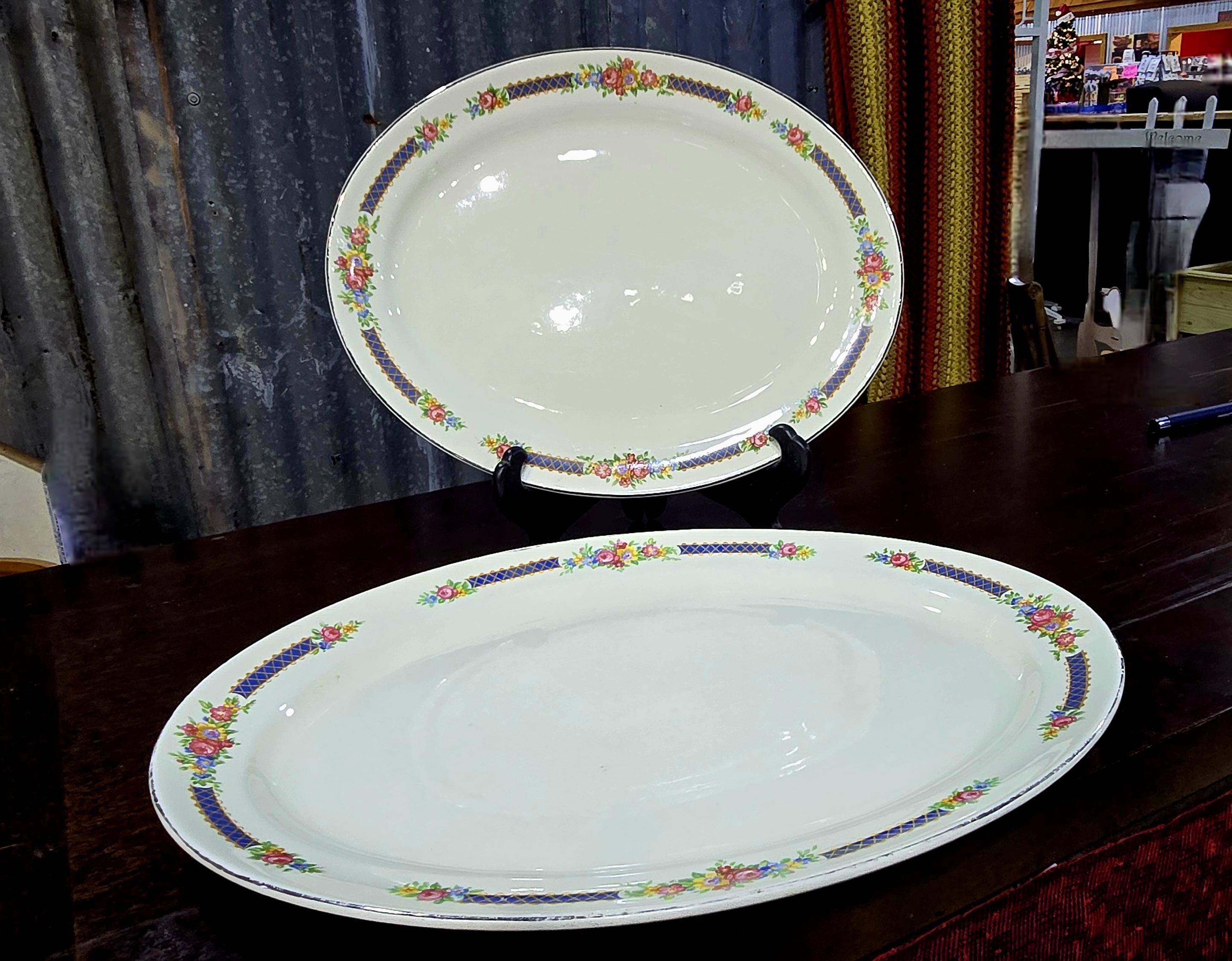 Set of 2 Vintage Hall's Superior Platter, "Blue Bouquet"
