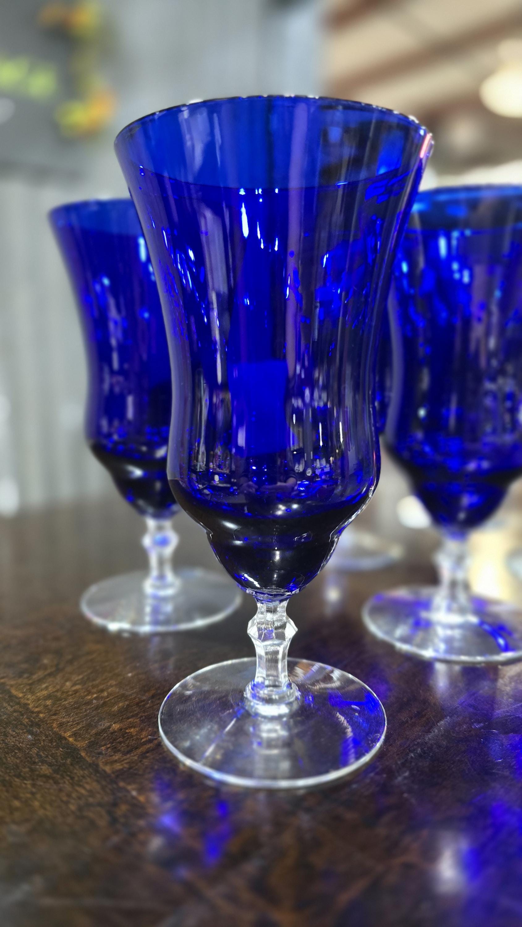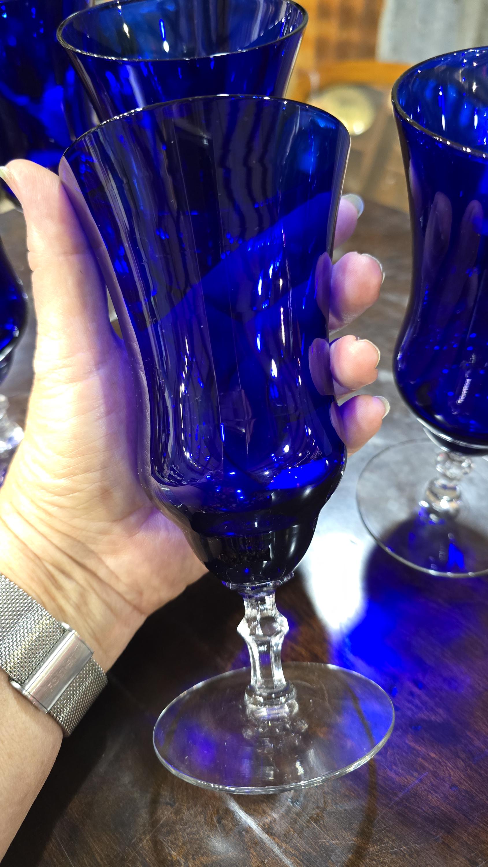Cobalt Blue Tea Glasses by LOUIE GLASS, set of 6, c.1930s