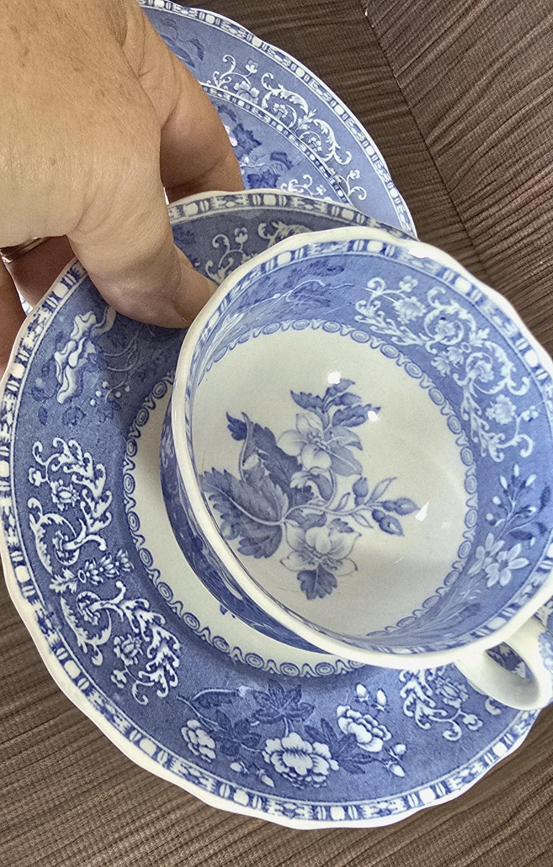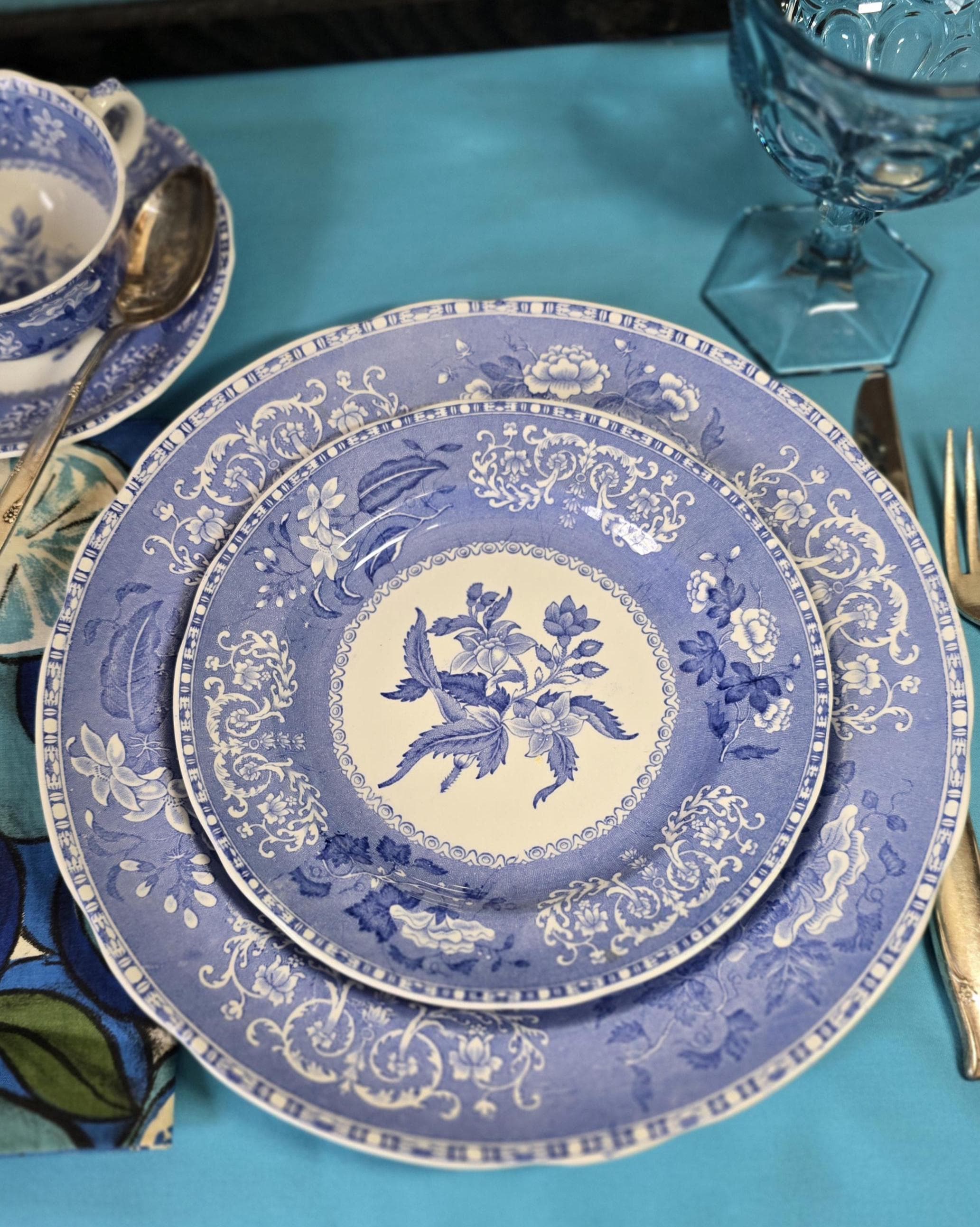 The ultimate in romantic transferware, Spode's "Camilla" pattern was initiated in the mid-1800s, during the Victorian era. When Copeland took over, they kept the revered "Spode" name so that people would recognize the continued quality of the tableware. While these have the look of fine china, they are earthenware. Each of these place settings is in superb condition.