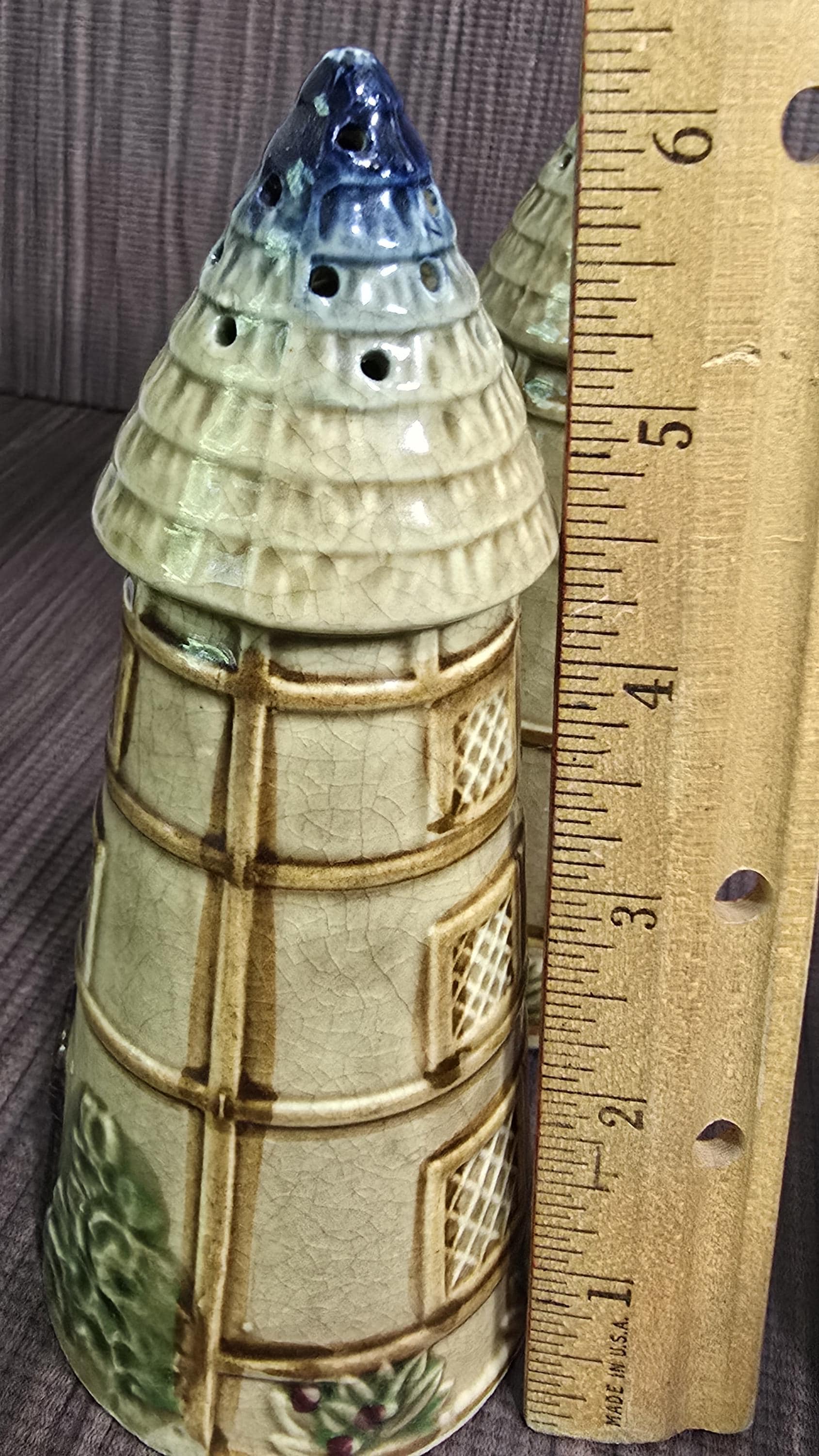 Condition: One shaker has a stable hairline crack that does not affect display. Light wear consistent with age. The set remains charming, cohesive, and full of character — perfect for décor, photography styling, or collectors who appreciate the handmade quirks of vintage Japanese ceramics.